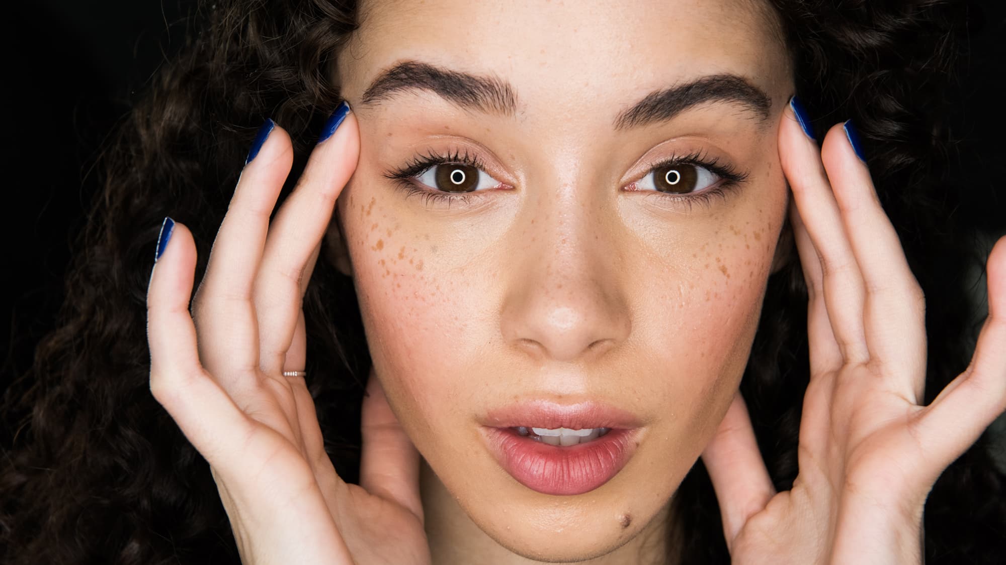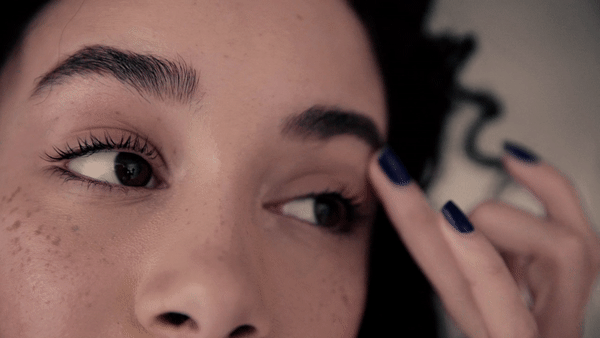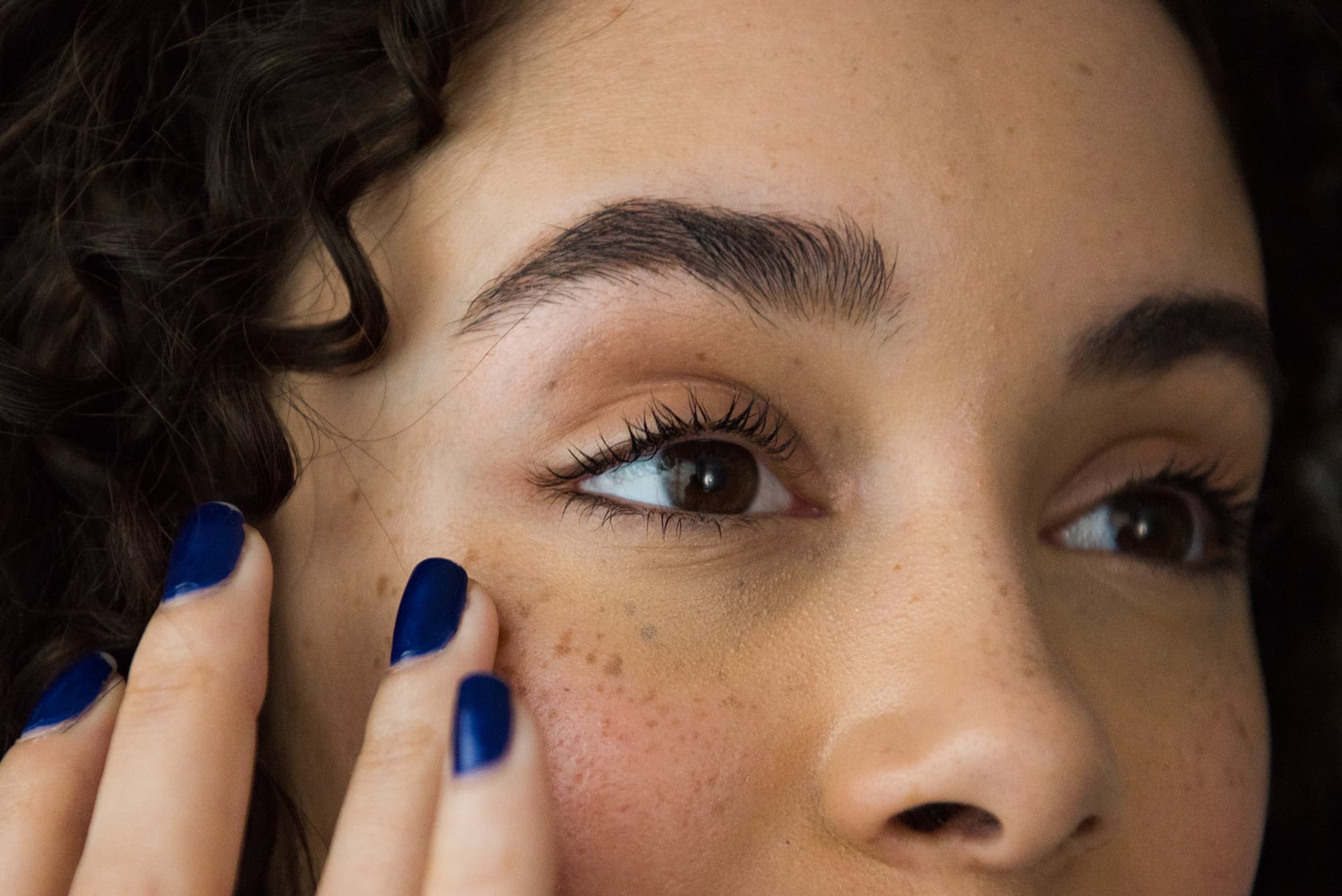 3. Use your fingers to apply a strip of highlight underneath your brows along the brow bone. Be sure to gently tap—never pull or rub, especially around the delicate eye area.