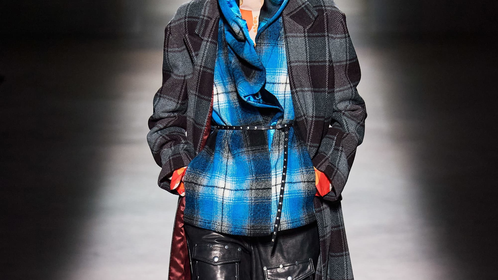 This recycled trend of the ’70s subculture is easily recognized by iconic symbols of the movement: safety pin adornments, ripped clothing, and lots of leather—pieces of resistance. Many designers referenced their punk predecessors in a literal way. At Monse, models were decked out in tartan plaid and fishnet stockings. R13 chunky moto boots stomped down the runways on models clad in 10-gallon hats and layers of shredded denim. Punk came in the form of mismatched plaid, studded leather, and