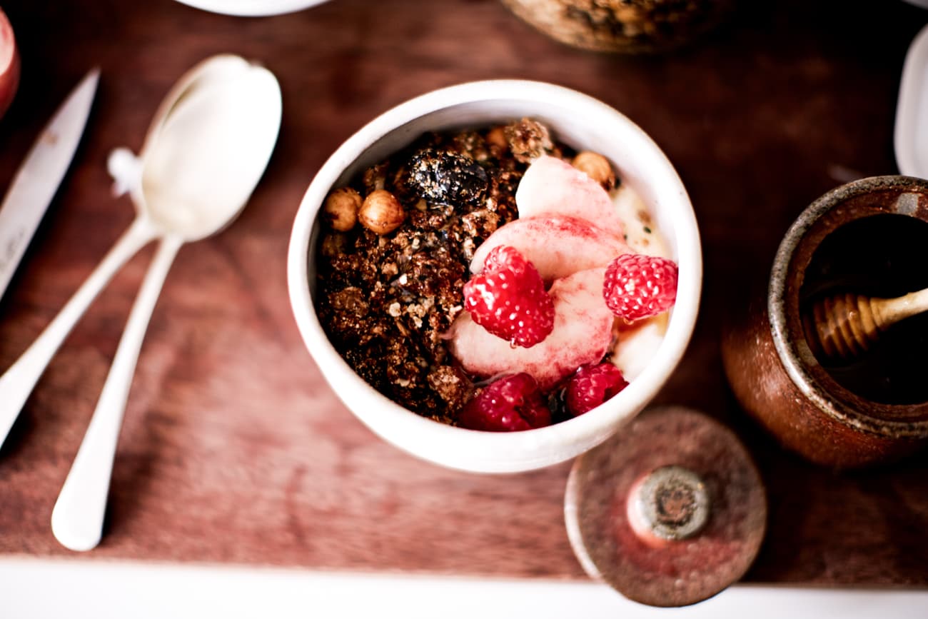 There are a lot of food items that are better off store-bought or taken from the safe confines of a restaurant kitchen (especially considering our sub-par DIY skills). Pretty much every food, in our opinion. But there’s one thing that we can confidently say that, when mastered, is far and away better than anything you can get at Whole Foods: granola, the breakfast staple best paired with Greek yoghurt and berries. Why are we suddenly so assured when it comes to this particular culinary venture? Well, because we’ve tried Claire Ptak’s healthy (flax, coconut oil, quinoa; check, check, check) hazelnut recipe. And we’re hooked. And, like, we’re sure the version made by Ptak’s own hands is probably the ultimate winner (she’s the owner of our favorite sweet stop across the pond, Violet Cakes Bakery—must-have cookbook out now), but the fact that we can get thisclose to her dish with the below recipe has us feeling pretty good about ourselves.