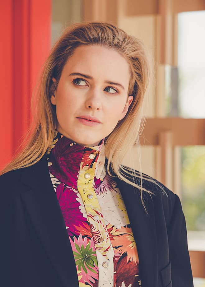 Born in Illinois, Brosnahan grew up immersing herself in books. Her father was in publishing. “I remember pre-cell phone, the only way I could get through doctor’s appointments or shopping with my parents was to read anything that was around, like pamphlets, magazines... I didn’t care. I loved to read,” she reminisces. It’s in those pages that she developed her imagination—and her skilled linguistics, which would come in handy as Midge. During high school, she landed her first small role in Michael Bay’s