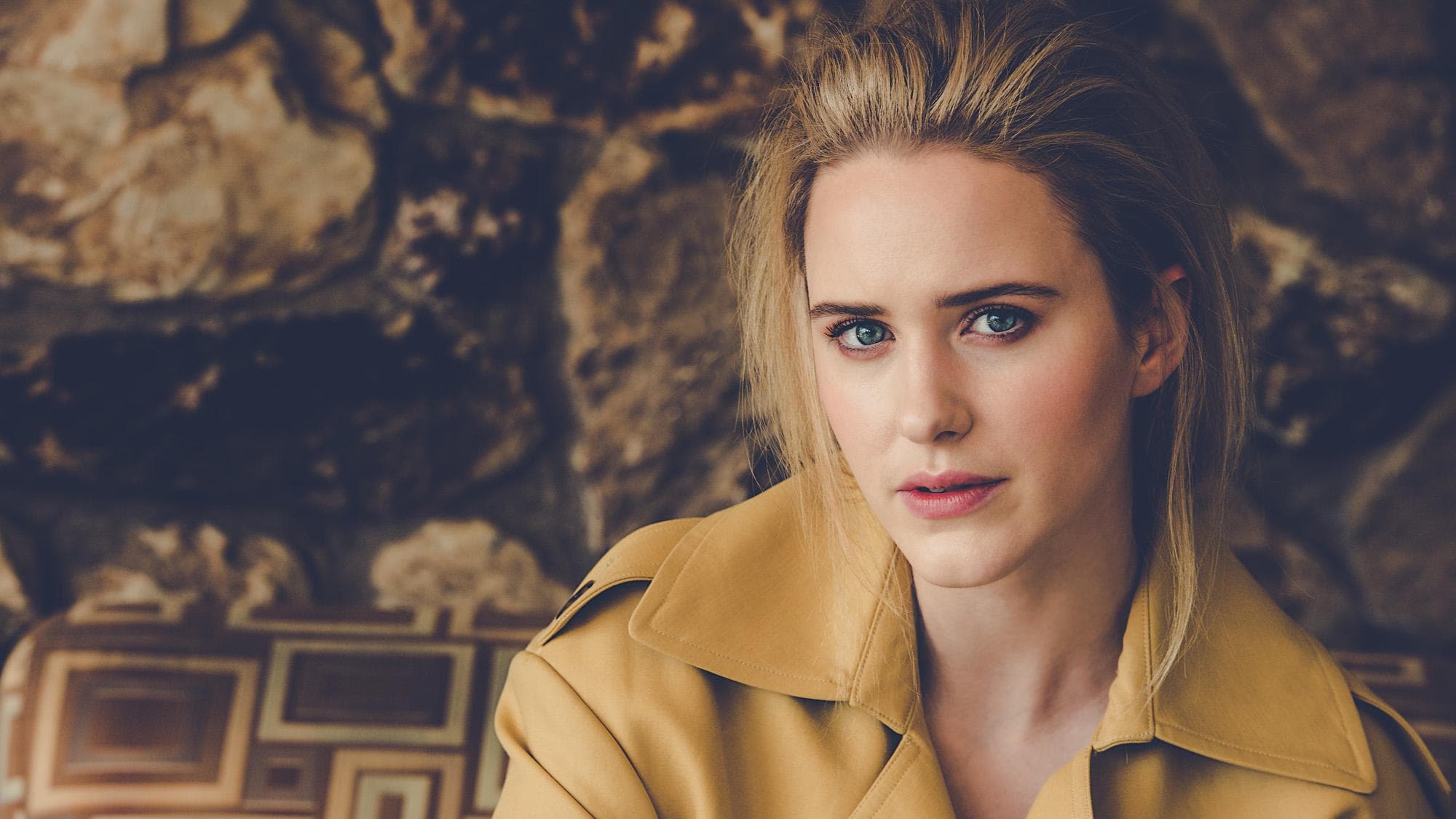 enters the mid-century bungalow nestled hilltop in West Hollywood, she beelines with a green smoothie in hand for a plain bagel from the pile on the catering table. She plops onto the outdoor couch in the backyard, strategically placed in the shade of the L.A. sun—I can only assume to protect her cherublike skin—tearing chunks of bread for fuel before she's meant to head to the makeup chair. At first I expect Brosnahan to arrive with dark, impeccably glossy coiffed hair like her character Miriam “Midge" Maisel in
