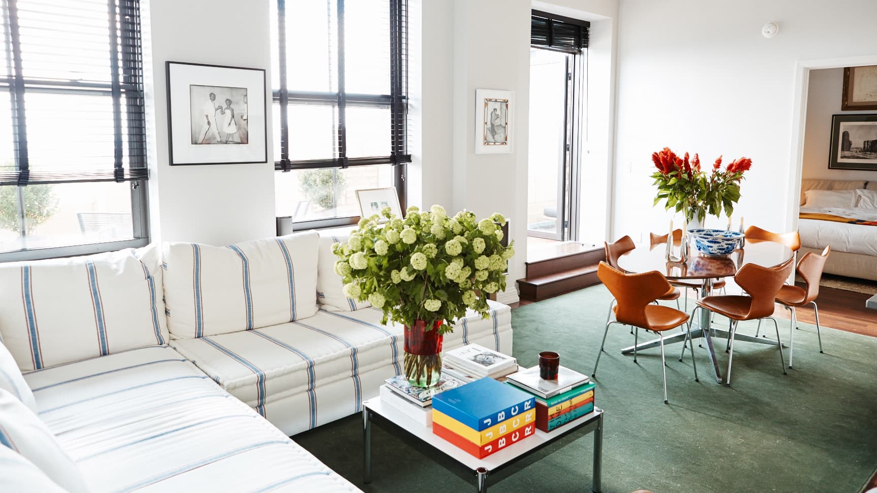 If there’s anyone that can claim to be a professional traveller, it’s Josh Udashkin, the founder of *smart* luggage company, Raden (the suitcase charges your phone and communicates with an app to let you know whether it’s made a narrow connection among a bunch of other actually useful functions). Udashkin had the idea to begin with because he was on a plane more than he was at home in his former role as Aldo’s head of global development. And because he’s still traveling constantly as an entrepreneur with his own company, his apartment, a high-rise in Downtown Brooklyn with the view, has become his sanctuary and getaway. The view certainly makes it special, as does being 24 floors up—which actually ensures one’s living space is quiet (the ultimate New York luxury, TBH). But his tendency for collecting and customizing furniture, keeping hundreds of books, and tossing a Hermès blanket here and there doesn’t hurt in the whole making a house a home situation either.