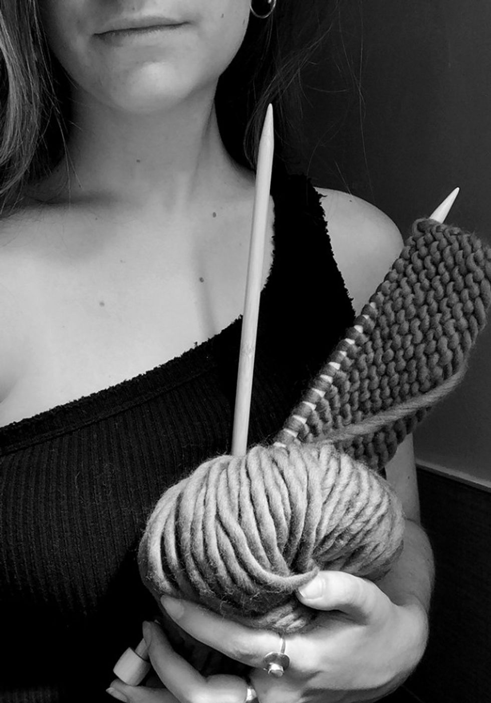 As soon as I wrap things up for work, or if it’s the weekend, I like to work on a creative project that’s more tactile and less digital (are you sensing a theme here?). Recently, I’ve gotten into knitting, which is honestly super therapeutic. Because I love a good self-care moment, I’ll burn some palo santo, maybe put on a face mask, and take the Rae DeStress supplement.