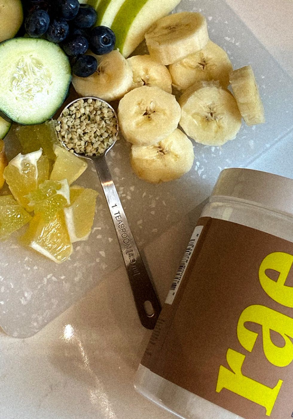 Around noon I enjoy preparing a delicious and healthy “brunch.” Lately, I’ve been on a smoothie kick, and I pack it full of greens, fruits, and nutrient-rich Vegan Collagen Boost Powder from Rae. I love the unflavored variety, which blends perfectly into my delicious smoothie. I’ll pair this with avocado toast or top my smoothie with granola.