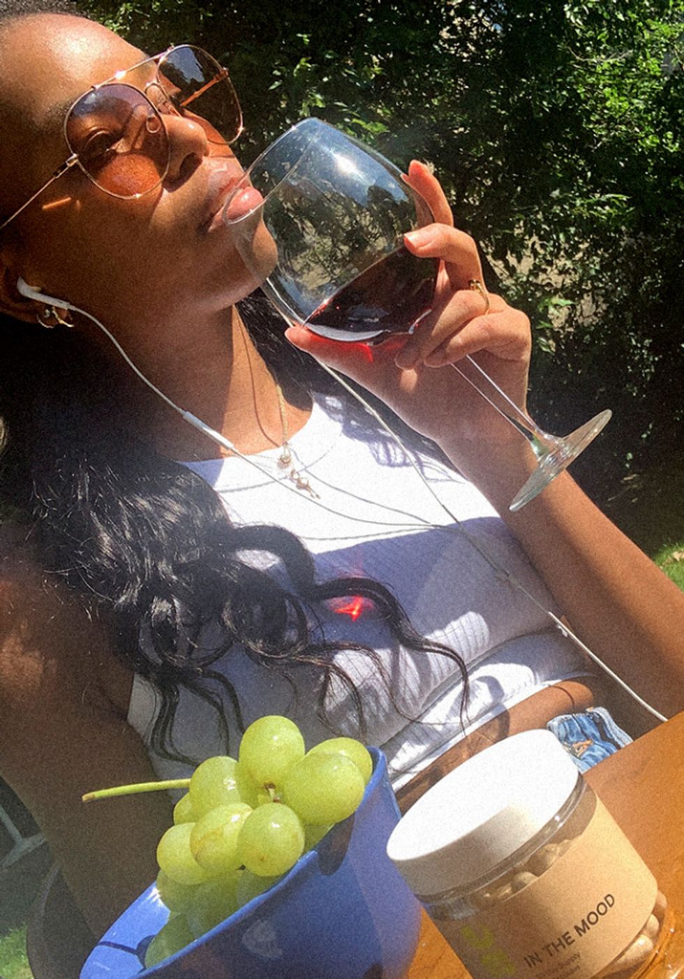 I recently moved, and I’m obsessed with my new roof! It provides the perfect view of Manhattan with enough space to socially distance from my neighbors. Because my roommates are also working from home, we like to reward ourselves with Friday night takeout, which is usually pizza and lots of vino! But life is all about balance, right? To keep things in check and ensure I’m getting my vitamins, I like to pop the Rae Multivitamins and Immunity capsules on the daily.