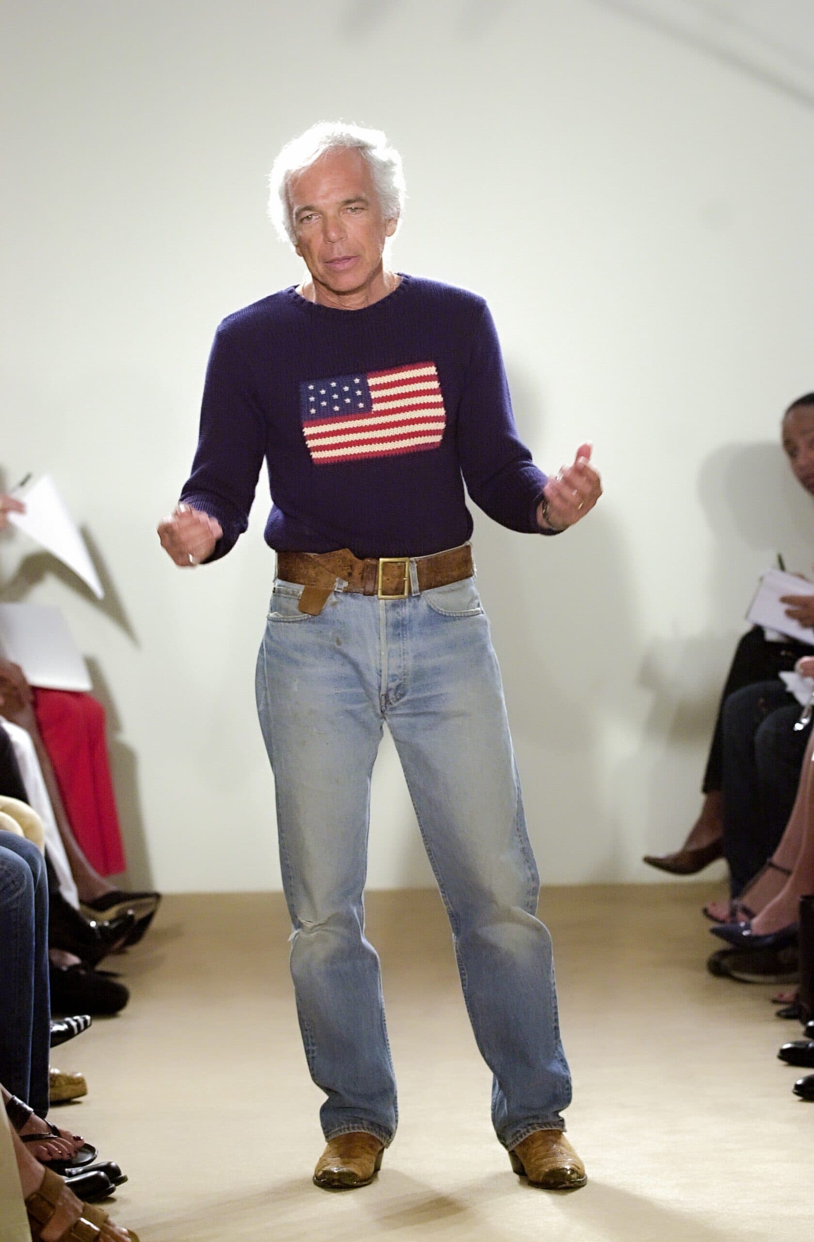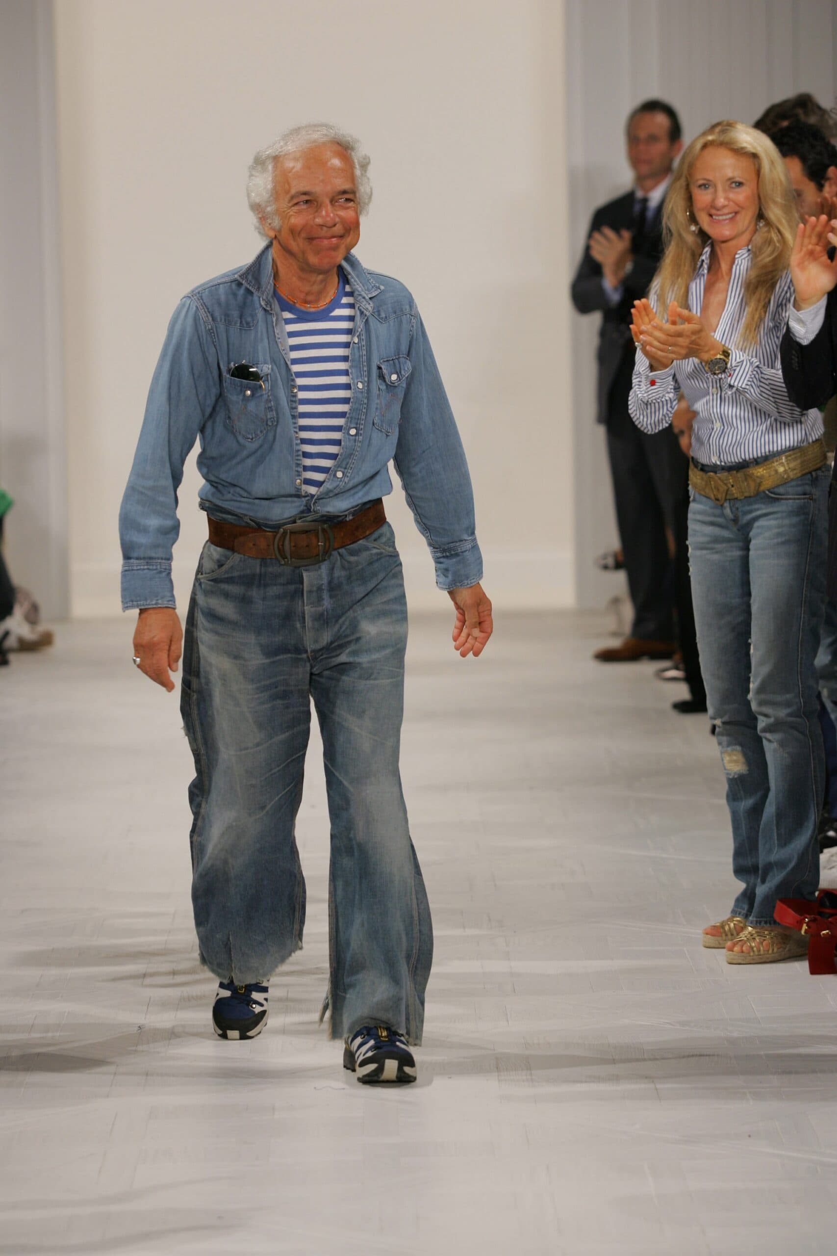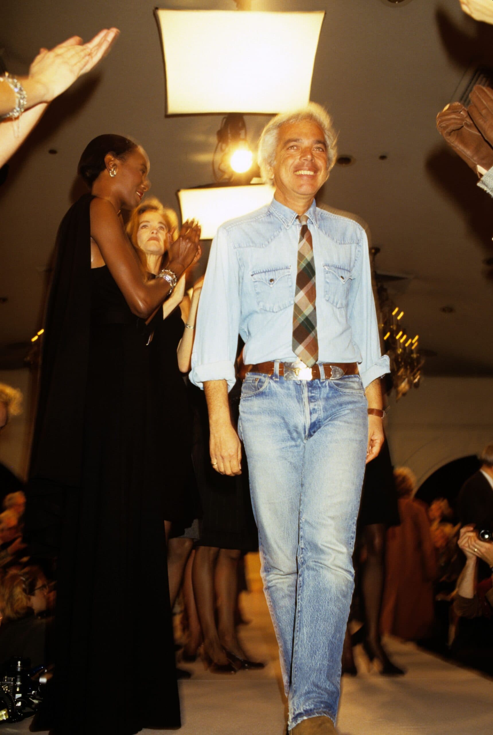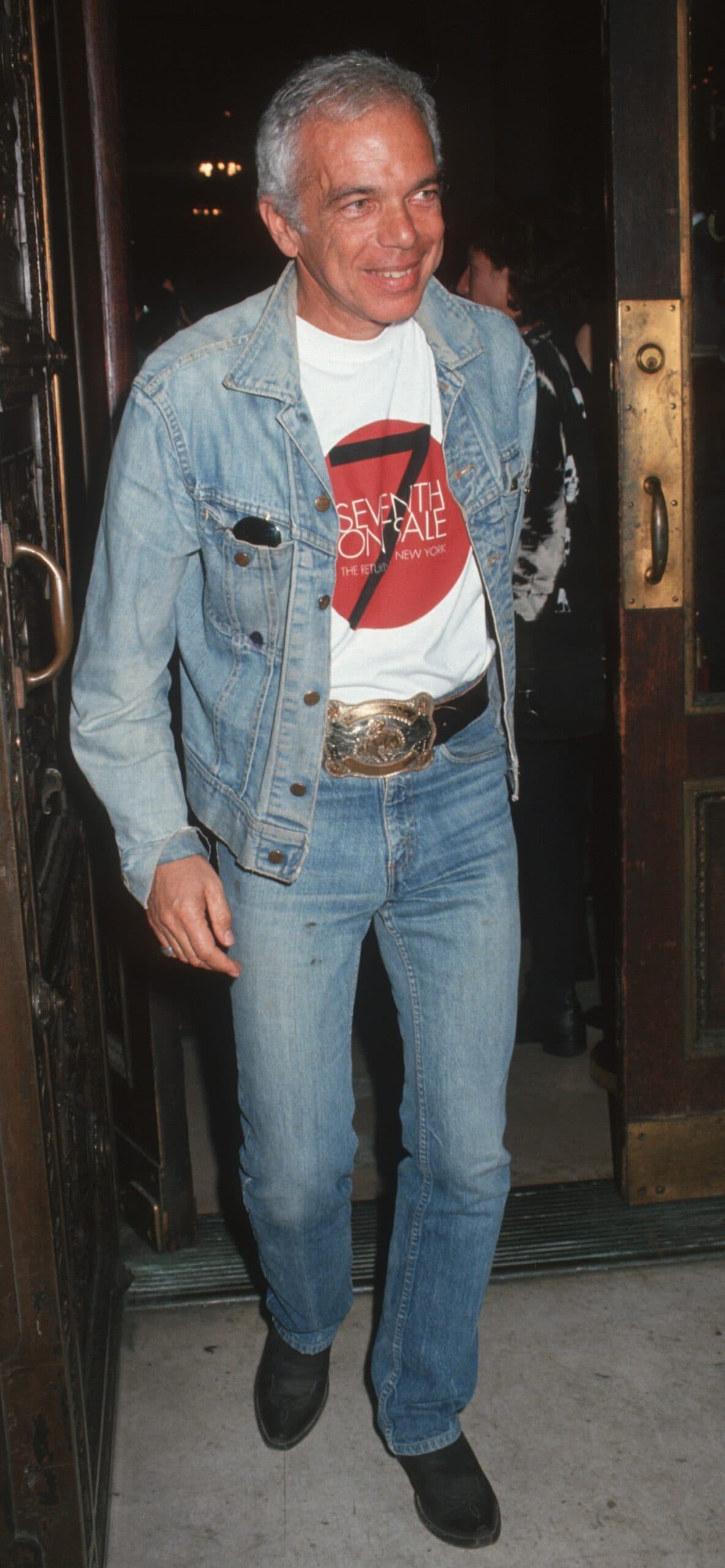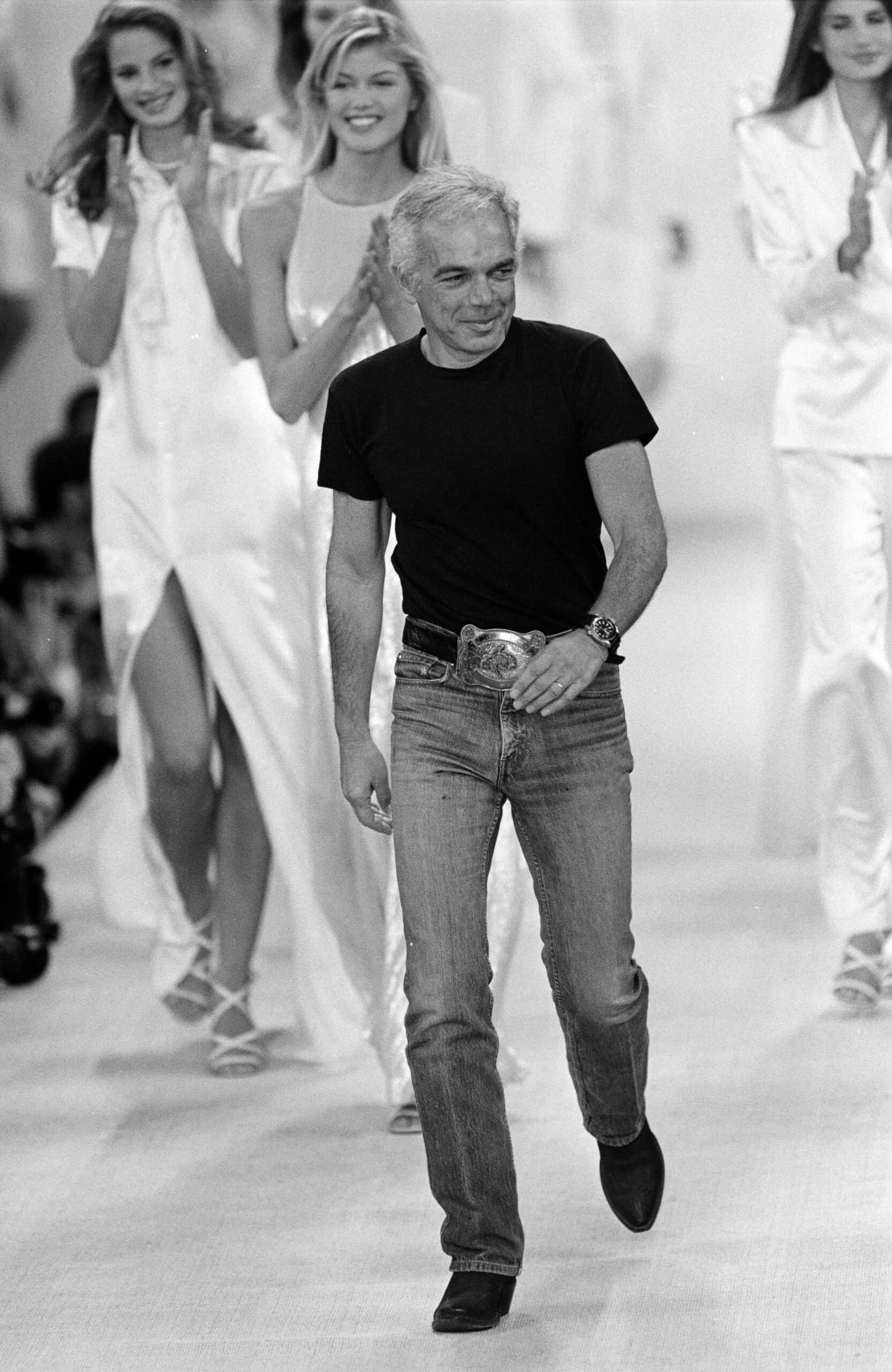 In turn, his uniform often consisted of the classics. Perfectly washed blue denim jeans, black blazers and turtlenecks, cable-knit sweaters and denim shirts, almost always accessorized with a western style belt. Below, we round up Ralph Lauren's most iconic looks to celebrate the American icon on his birthday.