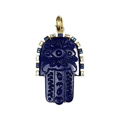 Carvings 18k Yellow Gold, Lapis Lazuli, Sapphire & Diamond Hamsa Pendant