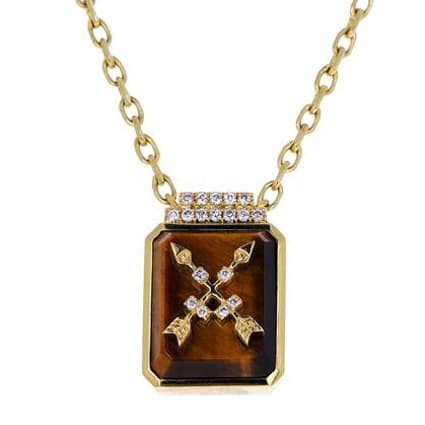 Tiger’s Eye and Diamond Crossed Arrows Signet Pendant Necklace