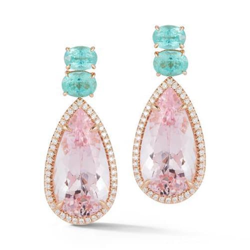Morganite and Paraiba Tourmaline Pastel Sunset Earrings