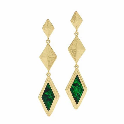 “I love working with gems like lapis, malachite, and tiger’s eye because of the color saturation and opacity of the stones; they have an almost textural feeling to them,”
