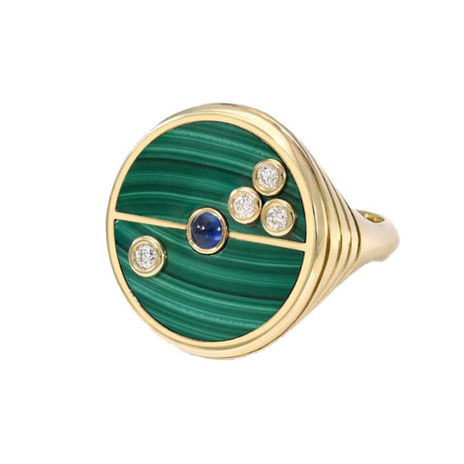 , founder and designer of her namesake fine jewelry brand, frequently incorporates gemstones into seasonal collections as well as her sought-after wedding and engagement pieces. “Colored stones are such a big part of my work,” she tells Coveteur. The designer explains how gemstones’ unique aspects lend themselves to specific designs; it all depends on the look or vibe she’s after. “Opaque gemstones like malachite, lapis, and turquoise are perfect when I want a punch of opaque color or when doing inlay.”