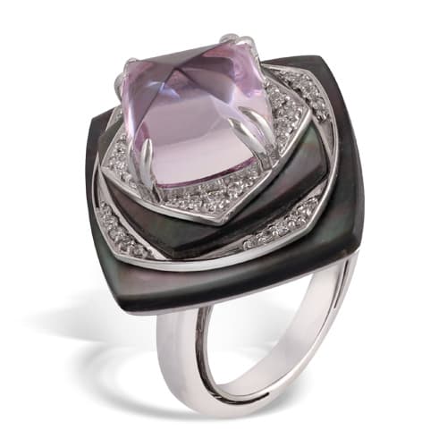 According to Mociun, Morganite’s light pink and peach color range goes from glassy to transparent and cloudy. “It can be faceted or cut into cabochons,” she adds.