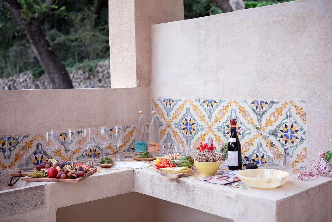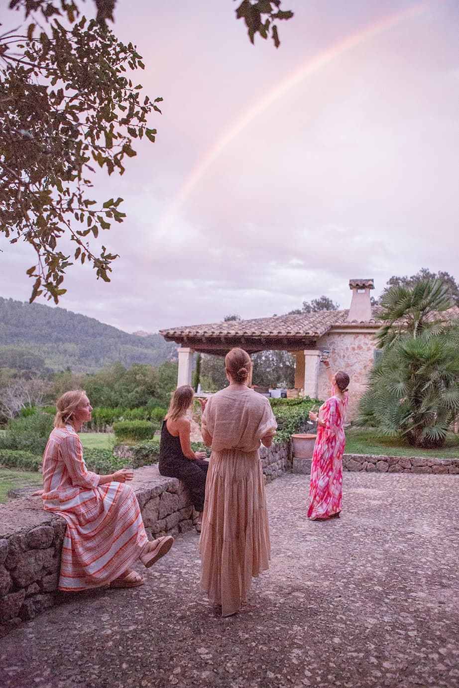 rental house in Pollensa. At a social distance, women in colorful kaftans sipped rosemary-infused cocktails as a brief drizzle broke the humidity. After the rain, a double rainbow arched across the Tramuntana mountains, and the evening was off to an auspicious start.