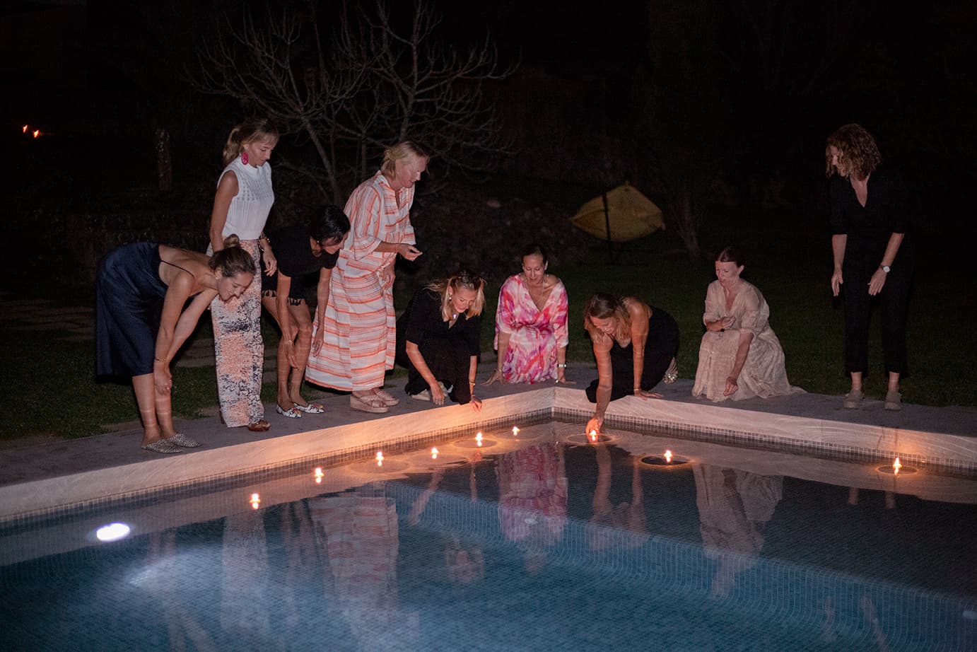 As the stars came out, guests filed down to the pool and set alight floating