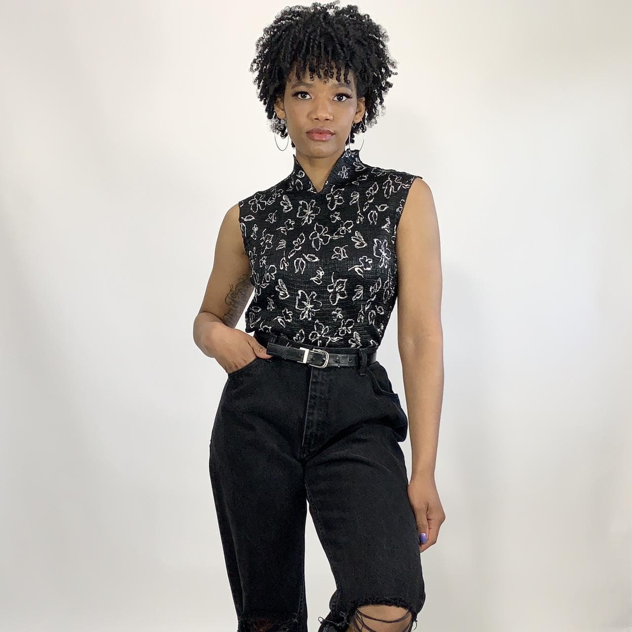 1990’s Vintage Flower Print Plissé Top