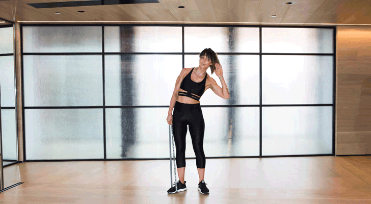 instructor, who came up with a routine for some serious head-to-toe toning using a single resistance band that fits in your Gucci bag, which means that wherever you find the time and space, you can squeeze in some training. Here, she shows us her favorite seven moves for strengthening and toning your abs and butt.