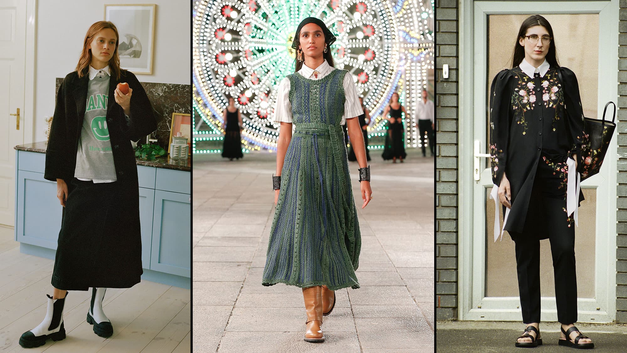 Top photo: (L-R) Josefine Seifert / Courtesy of Ganni; Courtesy of Christian Dior; Courtesy of Burberry