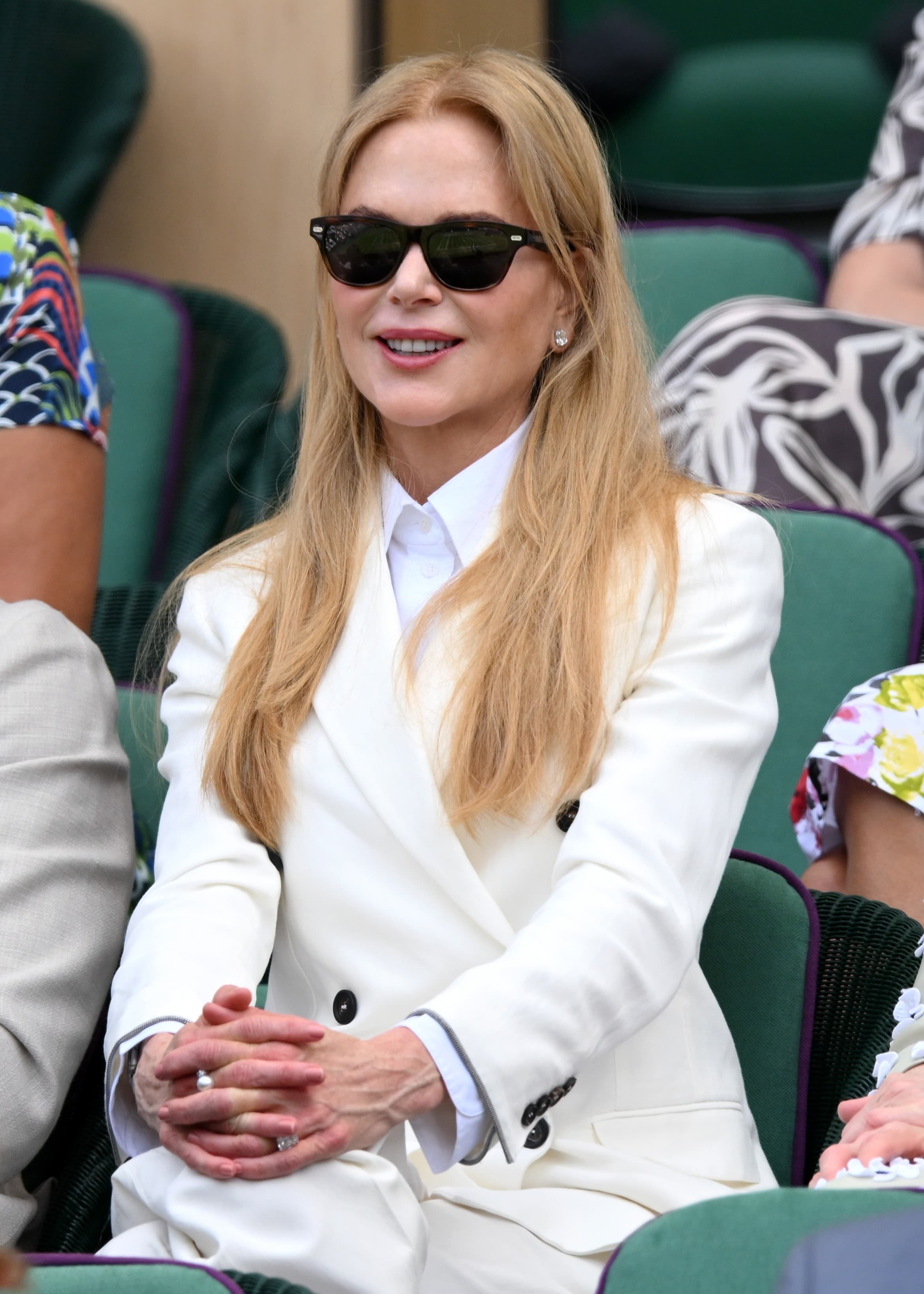 Getty ImagesMeanwhile, Nicole Kidman went for sleek and streamlined in a cream suit and cotton button up at Wimbledon.