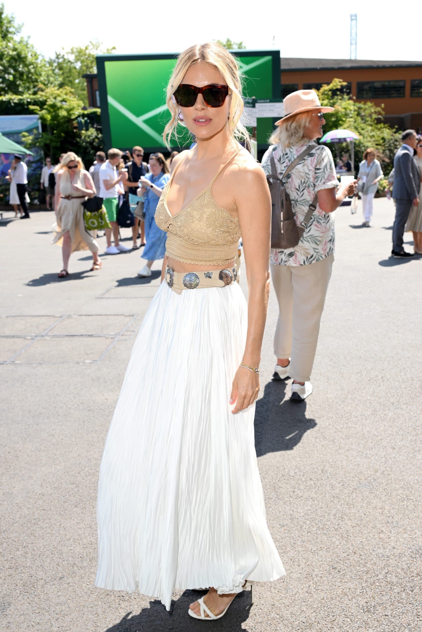 Sienna Miller skipped the traditional tennis whites and went for a boho-inspired Ralph Lauren look at Wimbledon instead.