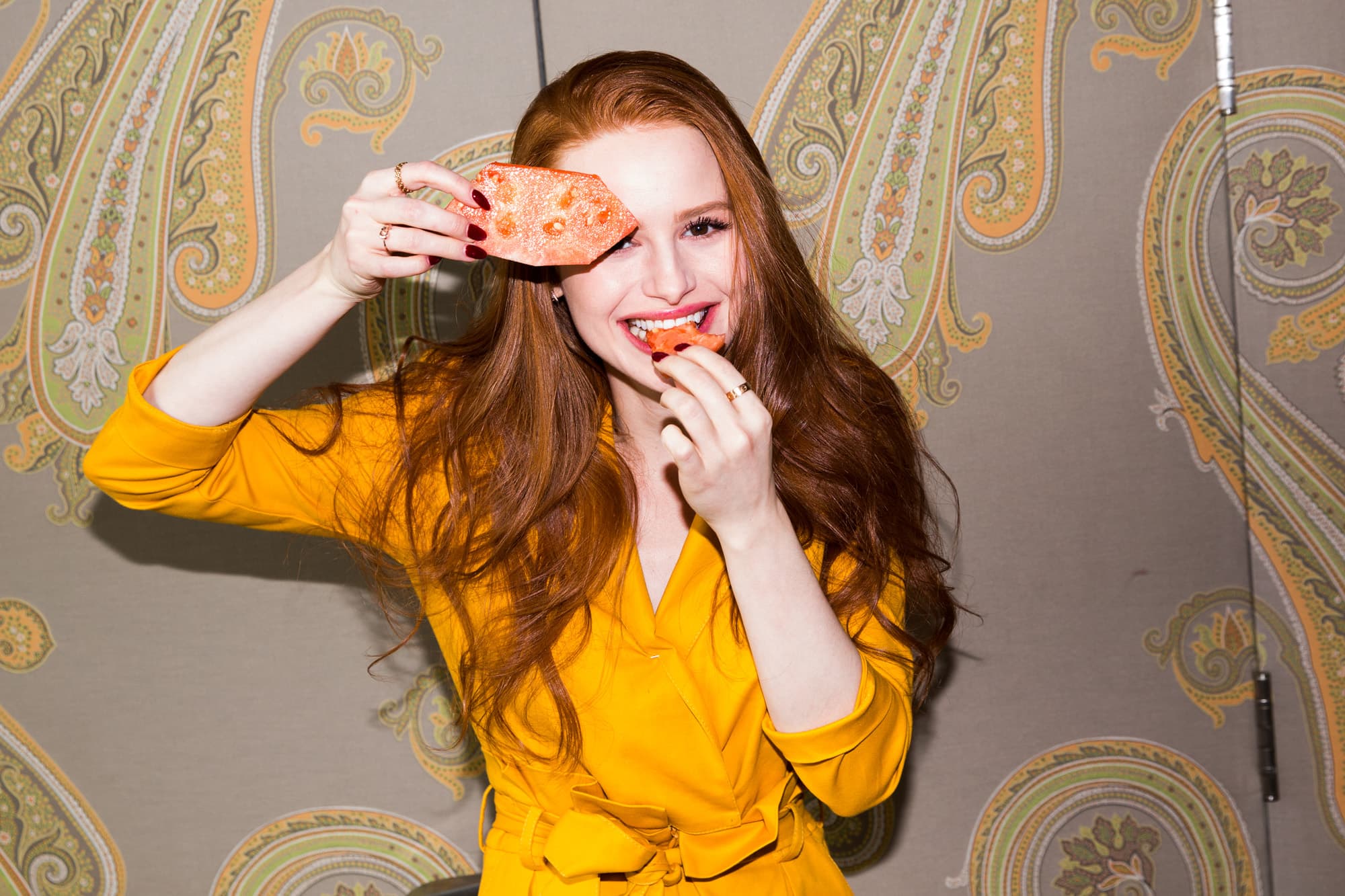 With all this beauty knowledge and savvy, it would be easy to assume that Madelaine has plenty of tricks for her long red locks, too. But when I ask her about them? There’s not much to share, since she’s never even dyed her hair.