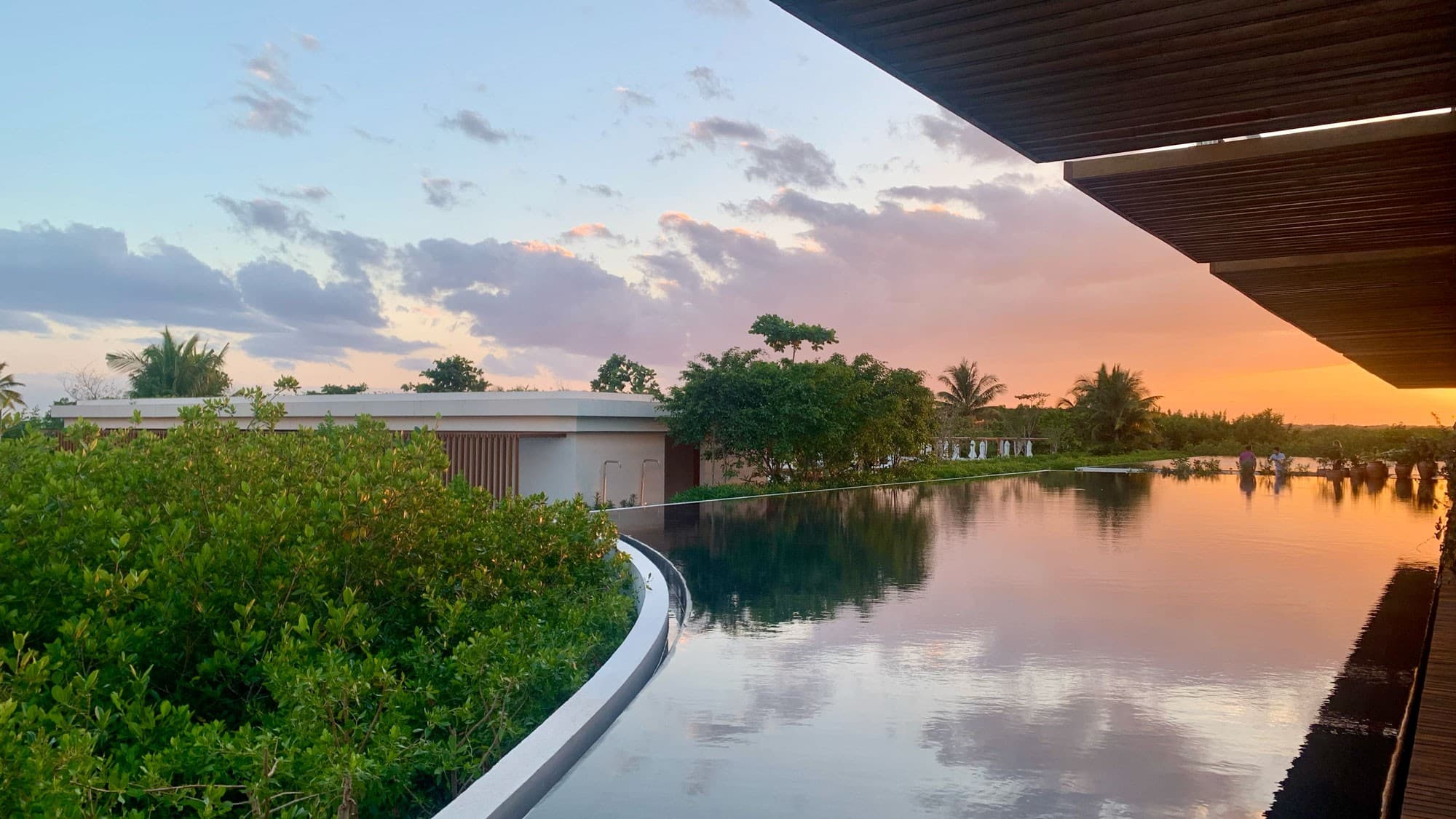 The water is a color of blue I’ve only seen in artificial candy flavoring and quite chilly if you don’t opt for a wetsuit (forfeit the bikini pics—it’s worth it). Swimming between the jaws of the limestone stalactites and subaquatic stalagmites, it doesn’t take long to surrender to the ancient majesty of the caves. I can only imagine that for the person who first stumbled upon this however many thousands of years ago, it would have been nearly impossible not to feel as though they’d trespassed into a spiritual realm. I took sloppy little photos with my bagged iPhone 10, but they all fell predictably short of reality. Returning to the hotel from the cenote, I have a renewed appreciation for this particular type of lightning the architects are trying to bottle and offer to us on a silver platter. Did I have a pervasive paranoia that the setting and guest list were perfect ingredients for a White Lotus-style crime? Yes. But at the EDITION, that feeling falls under the verboten category of “fantasy-ruiner.” So, instead, you sip mezcal as you watch the sunset from the rooftop pool of the largest penthouse suite in North America and surrender to the fantasy. Simplicity is, after all, life’s greatest luxury.