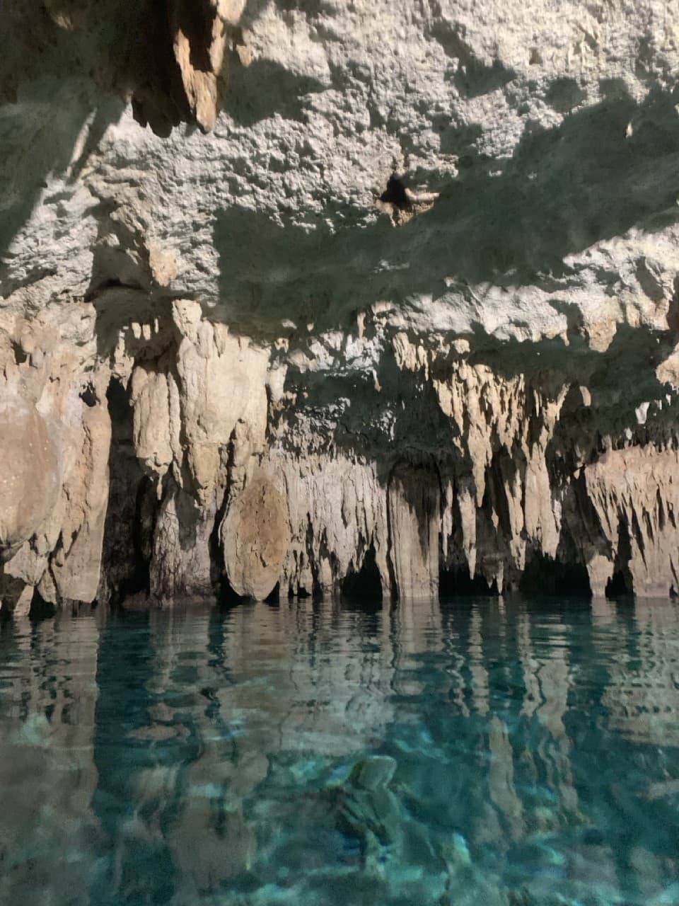 Courtesy of Andie EisenOverly coddled by the comforts of the hotel, the trip to the cenote comes as a bit of a rude awakening to some guests, and not only because most of us had been up until 4 a.m. at the beach party and had to catch the shuttle by 8 a.m. At each step of the tour, there is a Wonka-esque series of eliminations of guests dropping out of the tour group—one girl is too hungover, another feels the water is too cold, someone has a phobia of bats, and another person is on the verge of a panic attack due to claustrophobia. Armed with wetsuits and our phones tied around our necks in plastic bags, the rest of us descended into the cathedral-like caves.