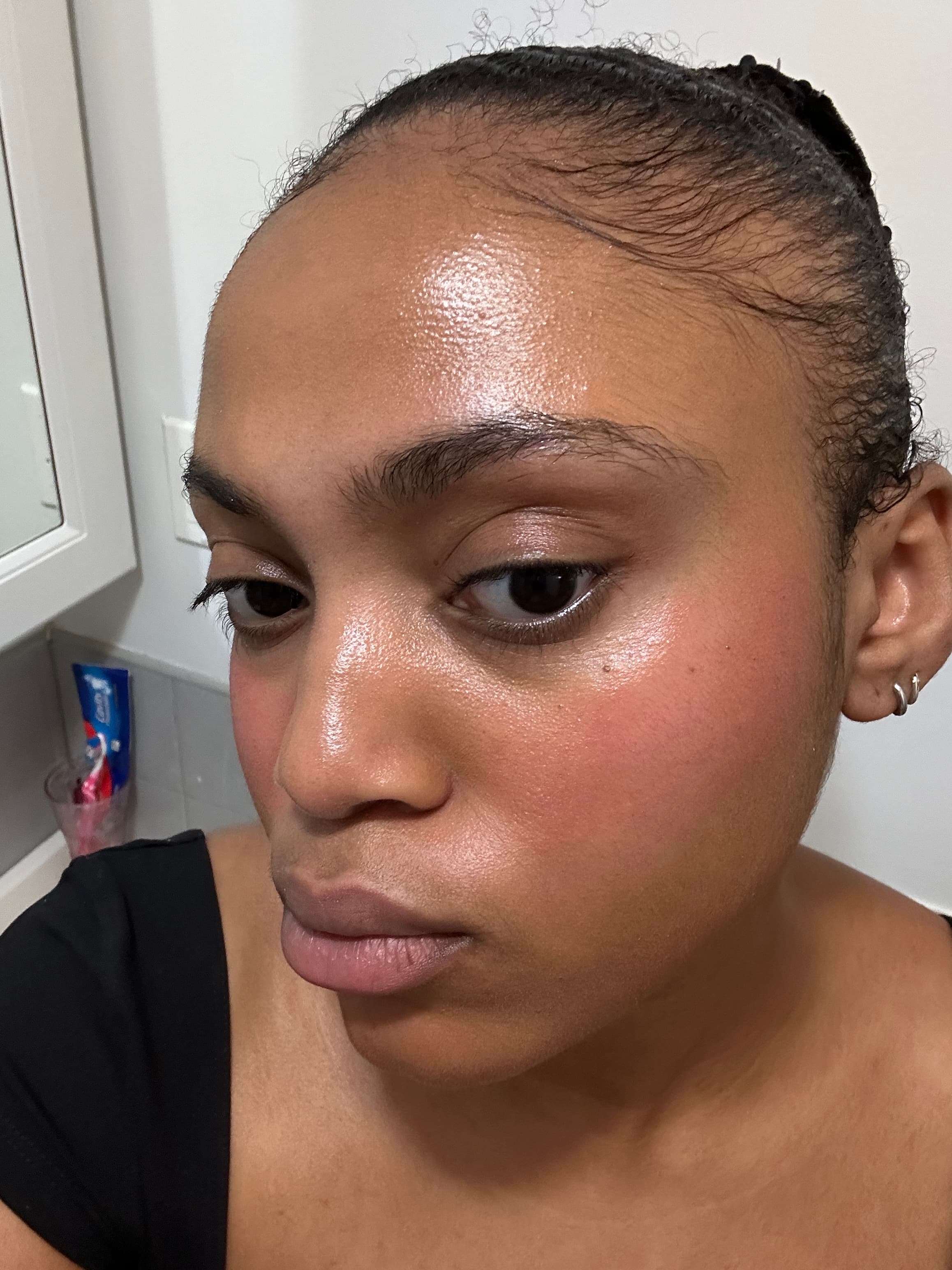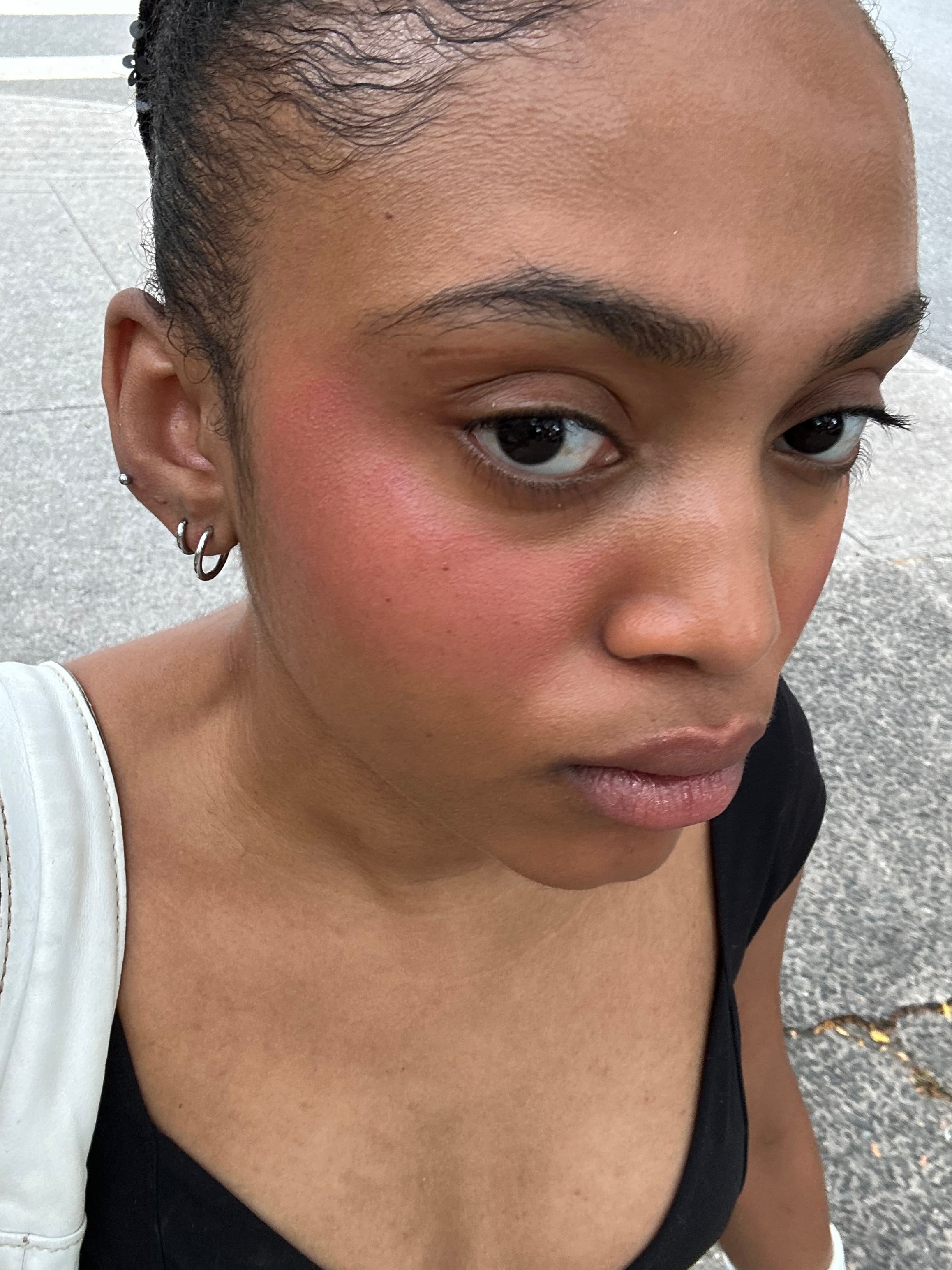Rare Beauty's liquid blush rings in at $25 for a 7.5 ml product. It comes in a tube with a doe-foot applicator and the brand offers blush brushes, making application clean and easy. Rare offers a range of thirteen shades including everything from a true red to a deep purple berry, while also offering both dewy and matte options. With a makeup as skincare approach, Rare Beauty's formula includes a botanical blend of lotus, gardenia, and white water lily to soothe, calm, and nourish. The product stayed on my face to an extent. It's perfectly normal for a liquid blush to fade throughout the day, so I ended the day with a more natural flushed look. I found the blush to be very buildable, but found myself needing to apply a couple layers. This isn't necessarily a bad thing when it comes to a liquid blush, though, considering that it makes it easier to build to your desired finish. You don't have to worry about accidentally over-applying and having to start from scratch.