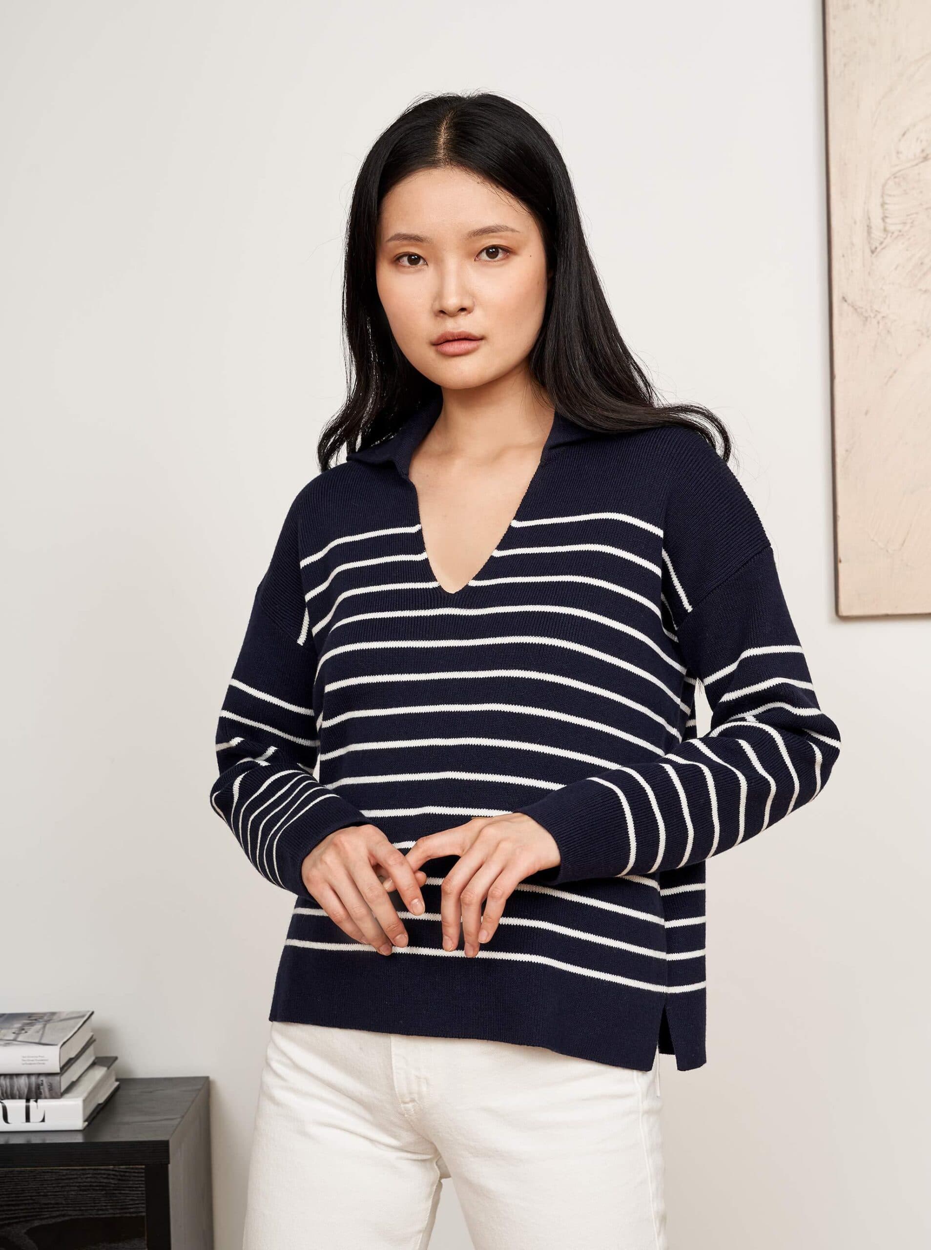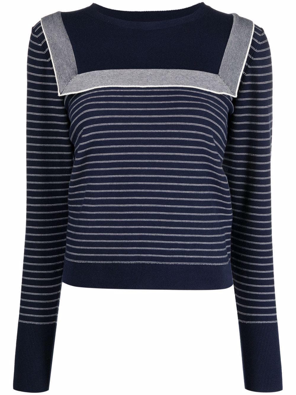 Photo: Riccardo Piazza / Courtesy of Bevza Modern riffs on sailor collars have made their appearance in collections ranging from Rosie Assoulin to La Ligne, decorating recent runways at Miu Miu and Bevza. The collar in question is characterized by an exaggerated flap that hangs over your back, sometimes extending to hang in front of your chest, as well. Though nautical in nature, this style of collar has been transposed to accommodate everyday wear, adorning quarter zips and simple button-downs. Whether you're into the blouses or their sweater counterpart, we've rounded up 12 iterations for you to add to your wardrobe below.