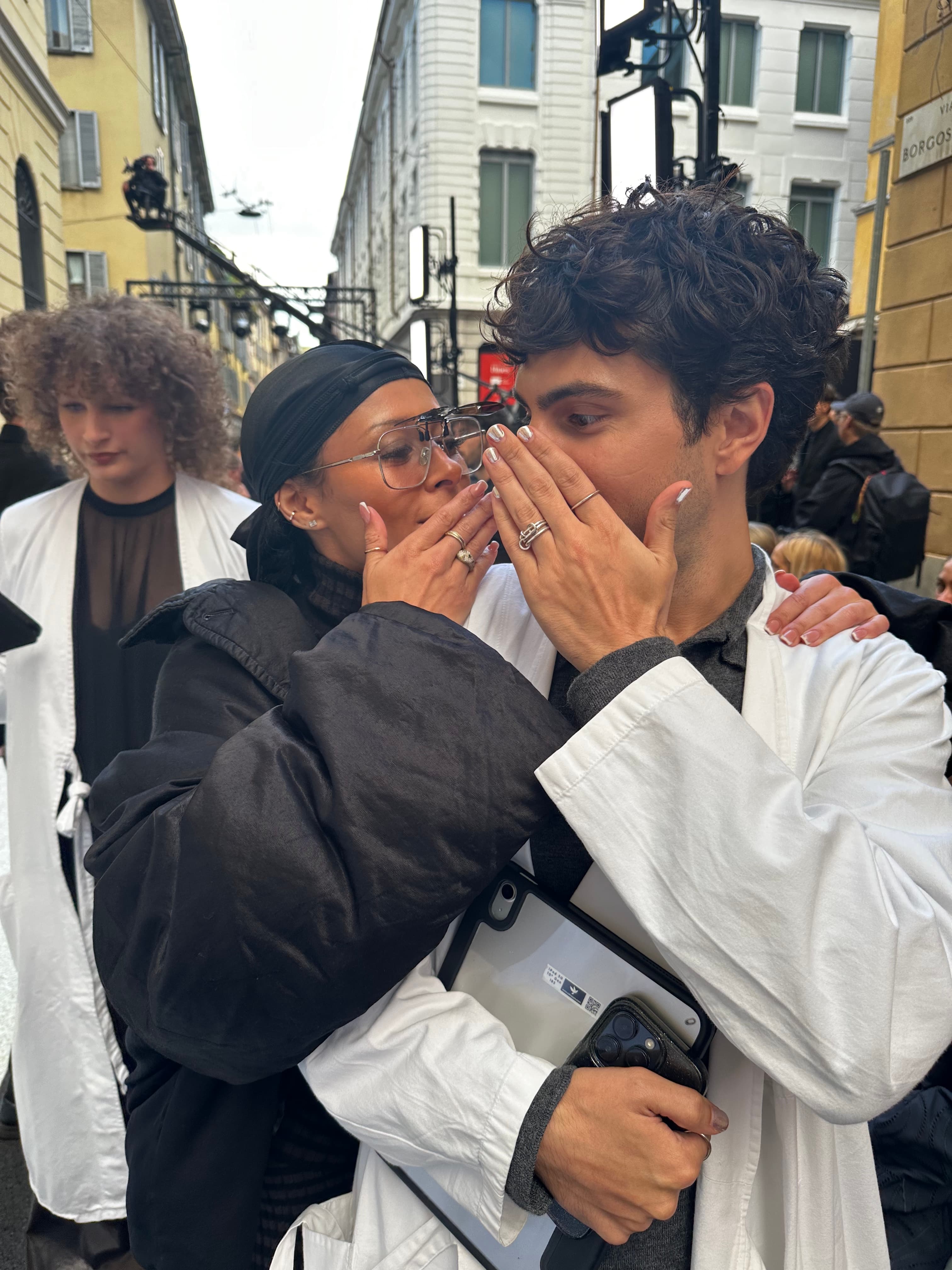 "Ran into my love Linlin after the show and we had to do a throwback moment from last season at Milan Fashion Week."