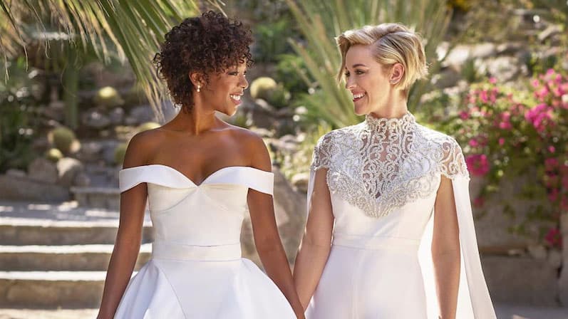 When we first found out that OITNB’s Samira Wiley was engaged to her longtime girlfriend, Lauren Morelli (who is actually a writer on the show), we *knew* their wedding looks would be something special. The two spent their big day dressed in custom white designs made by friend and designer Christian Siriano: Samira wore a full off-the-shoulder gown, while Lauren kept things cool in an embellished caped jumpsuit. But after the vows were read and things were officially official, the stylish choices just kept on coming. The women posted photos—presumably from their honeymoon—in long vacation-ready dresses, and we’re inclined to say that the picks were just as lust-worthy as those fancy wedding getups.