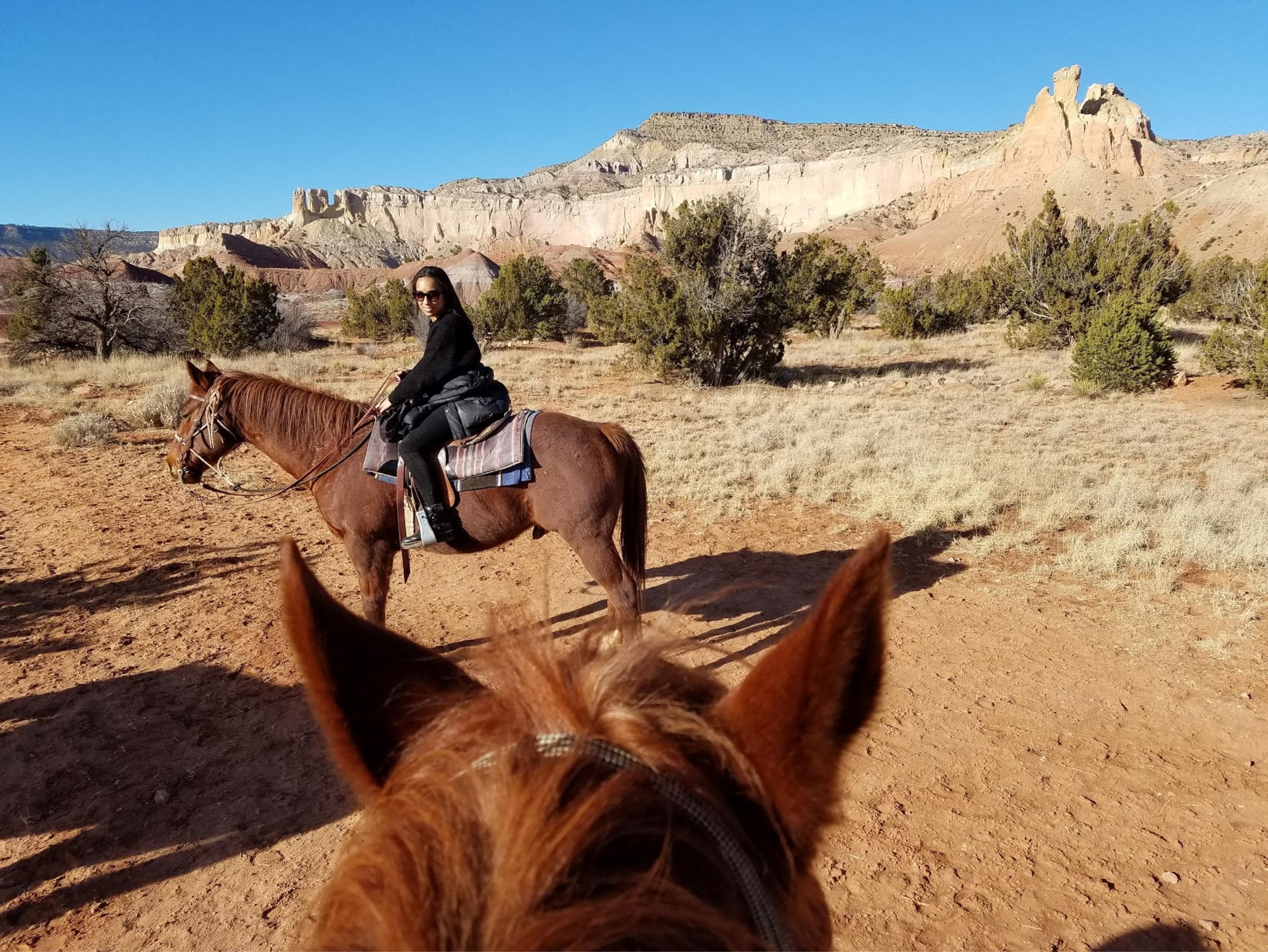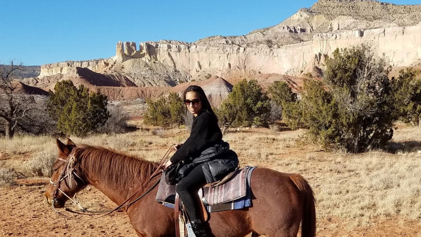 Shani horseback riding at Ghost Ranch near Abiquiu"When we're in Santa Fe, it's easy to feel grounded, life is a bit slower here, and having the outdoors so easily accessible helps me to feel recharged and relaxed. There are so many places to hike, take short trips, go horseback riding, or simply walk around town. No matter where you go, you always have to be prepared for an instant downpour during the summer months in New Mexico. Monsoon season goes from July until September and it is such a magical time. The air gets a bit magnetic and feels turbulent. I love that you could be baked in sunshine one minute, then completely soaked the next. After the rain, all the land seems to emit the most lovely ozonic scent, which I try to savor every time—it's the most soothing and refreshing smell. Our Metamorph Cleaning Balm was created to capture this aroma and flood skin with intensely nourishing hydration." —SVB