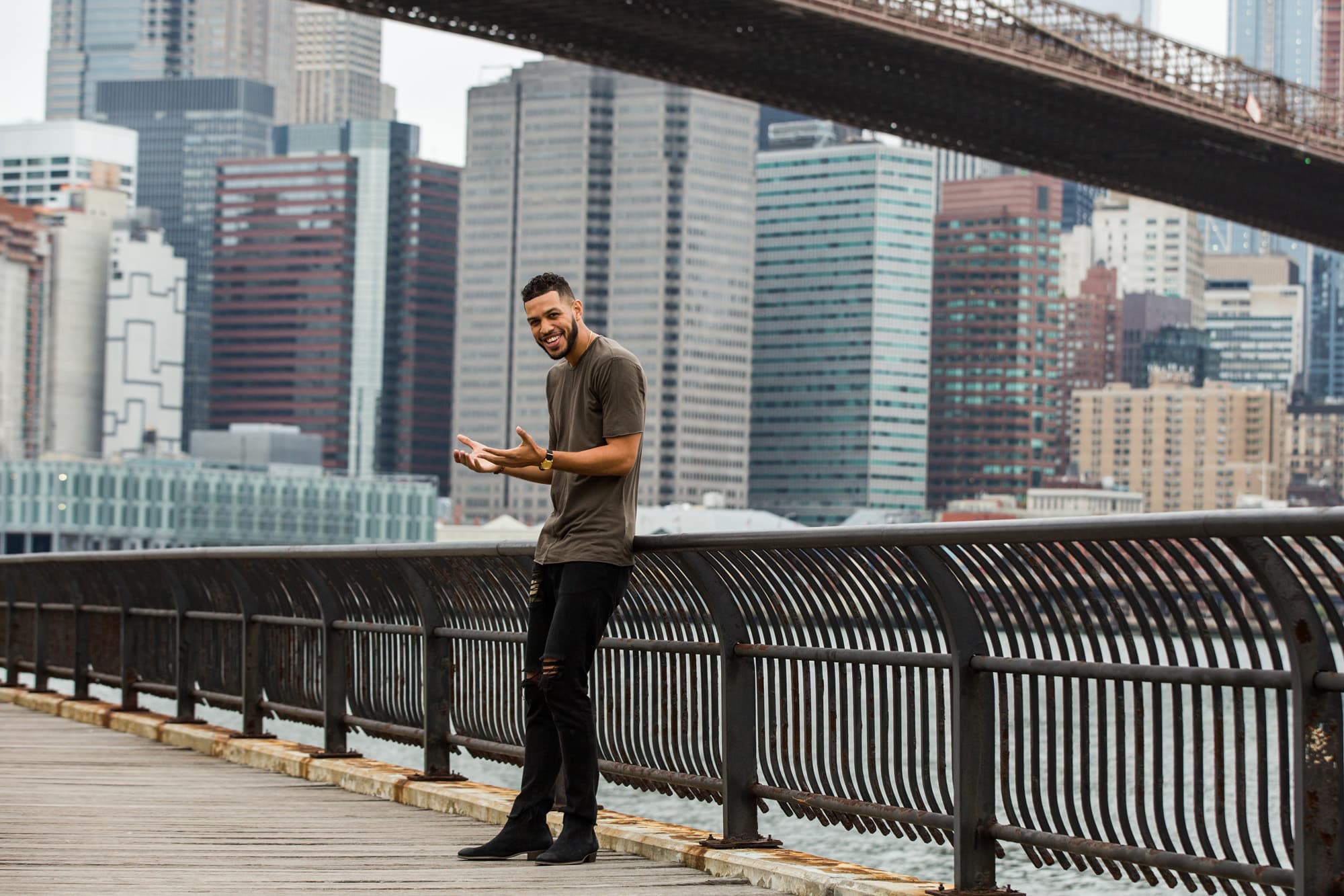 What do a nanny, a stylist, and an on-duty NYPD police officer have in common? When we interviewed Sarunas Jackson at Brooklyn Bridge Park, all three approached us—eyes and smiles widening—asking for a picture with the actor. A warm and welcoming “of course” was his response to every request, so by the end of the interview, we’d learned about more than Jackson’s Northern California upbringing, personal connection to his Insecure character, Dro, and former career playing basketball overseas; we’d also learned the best photo angles of several strangers. (We took all the fan pics.)