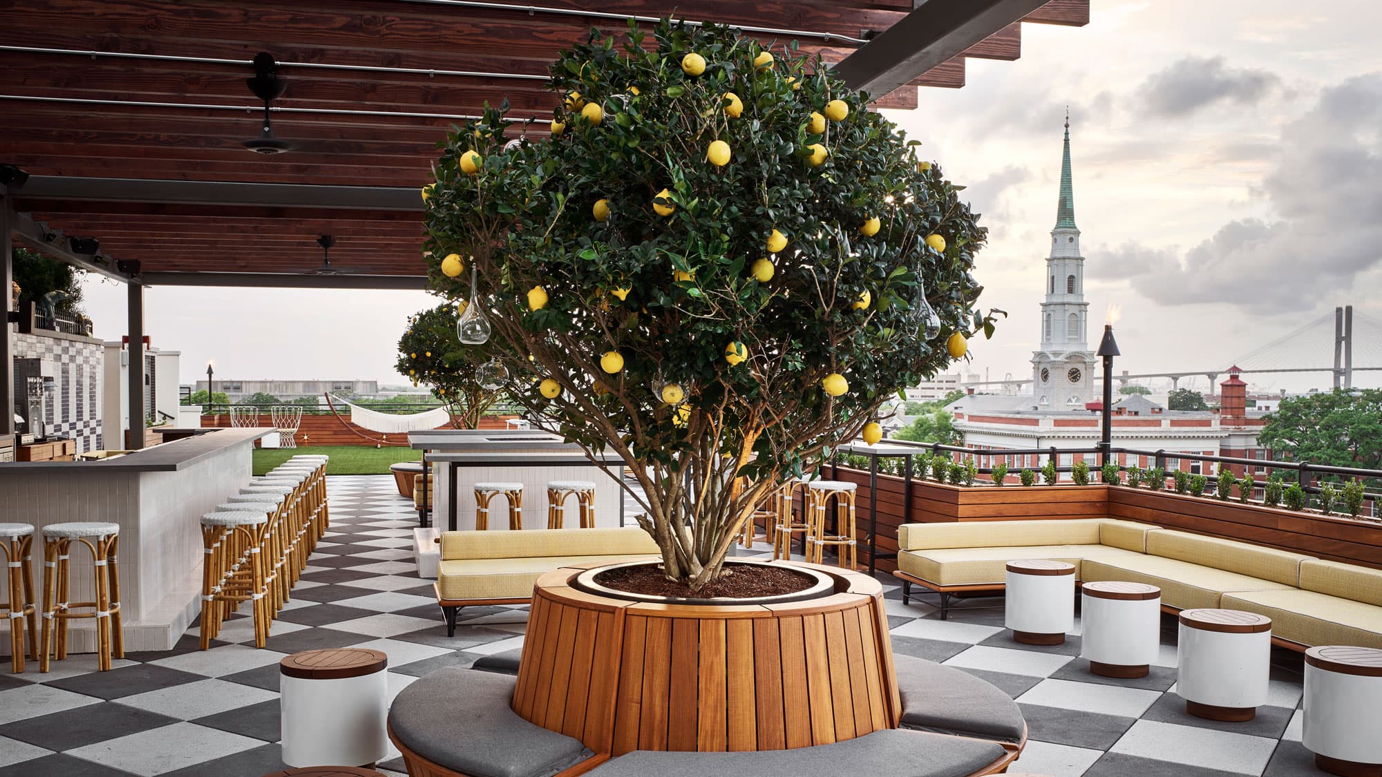 based firm Flank and designed by AvroKO and Savannah’s Hansen Architects. The 167-room hotel, which includes 12 suites, includes subtle nods to the city’s rich history with maps and cool tchotchkes in the guest rooms and common spaces.
