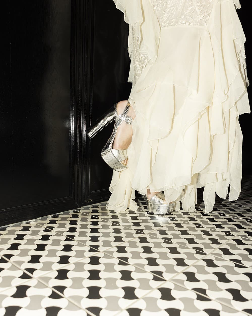 Scarlett Johansson spent months filming in the jungle for "Jurrasic World Rebirth," where her character, Zora Bennett, is a covert operations expert leading a team through a DNA extraction mission. This means more often than not, she's traipsing through a muddy jungle wearing head-to-toe outdoor gear—which might explain why Johansson went the complete opposite route for her look at the New York City premiere of the film. "I really wanted to lean into more romantic, soft styles," she tells Coveteur exclusively. Her dress was an angelic, wispy gown from Givenchy, complete with a lace bodice and cascading chiffon layers; her glam was skin-focused—courtesy of her skincare brand The Outset's Prep Serum, which she calls her "desert island product"—with subtle sculpting and a glowy finish. The overall effect was angelic, ethereal and a far cry from anything remotely outdoorsy (though if anyone could traipse through a jungle in a Givenchy gown, something tells us Johansson could?).