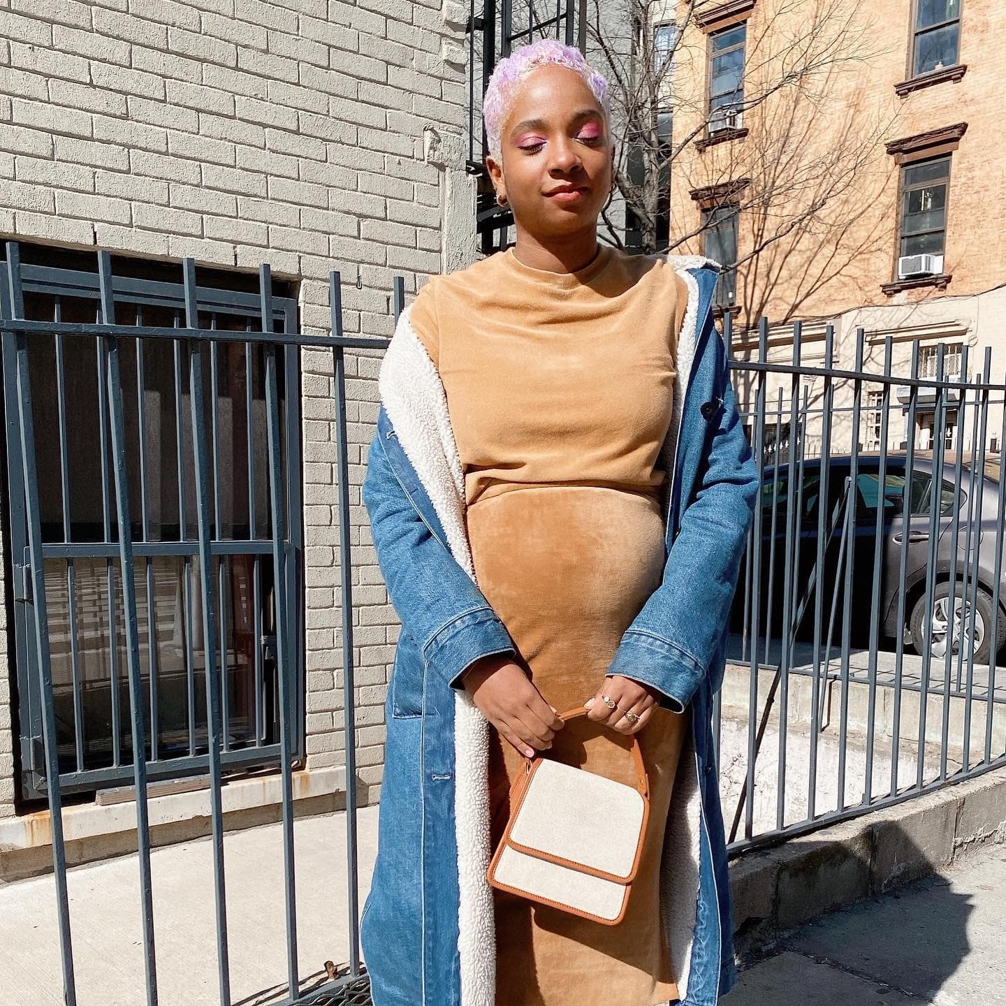 "No. I got pregnant in November 2019, so I spent the majority of my time pregnant during the pandemic. I announced my pregnancy right before fashion week and I was having a lot of fun with it. I was very determined to not wear any maternity clothes. I found it to be more of a creative challenge. This was pre-Rihanna, so I did have a hard time finding my maternity style. It was kind of like what Maddie Perez said on Euphoria—I just want to be me, but pregnant."