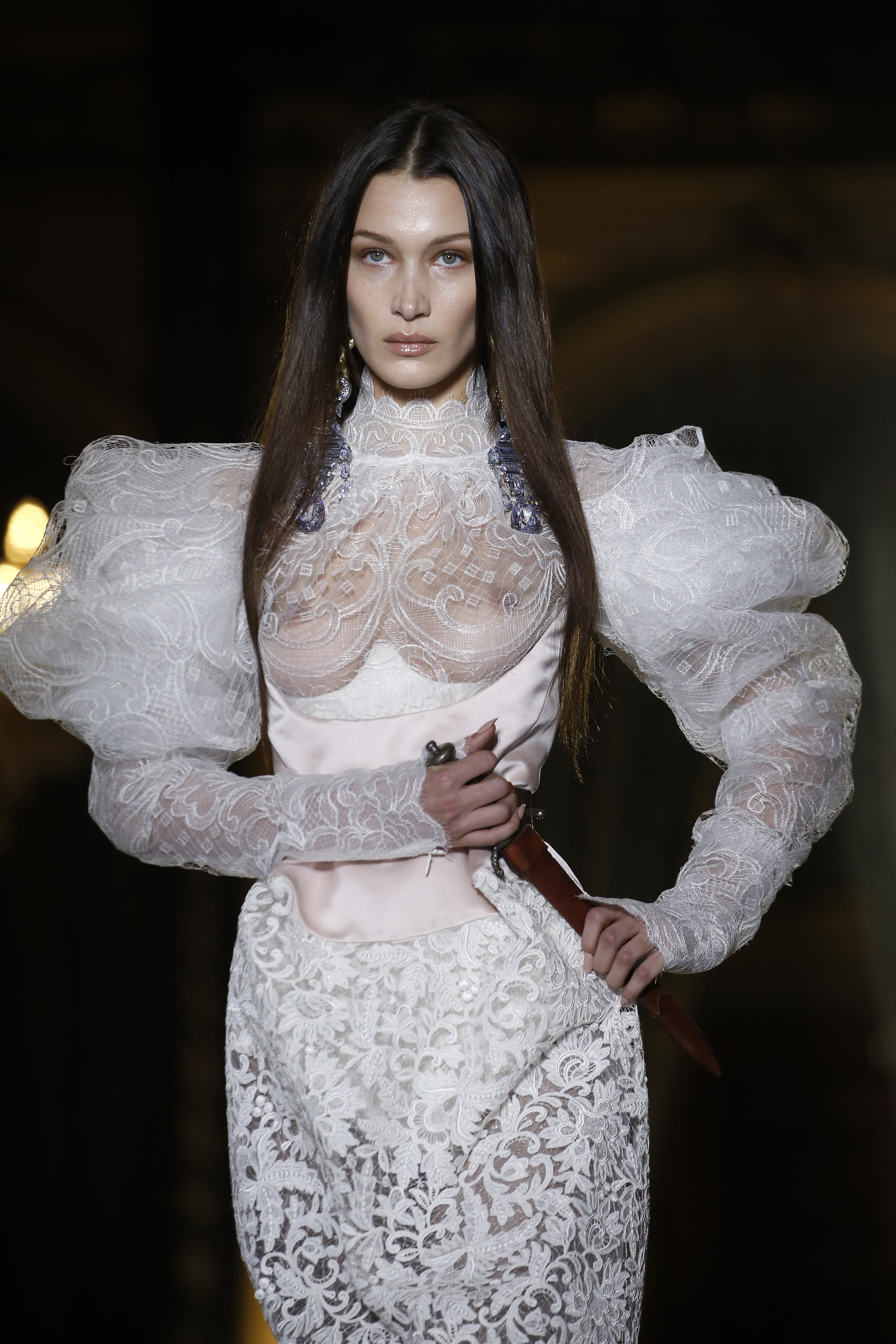 Bella Hadid walking for Vivienne Westwood F/W 21 Getty ImagesA sheer dress can be styled with a blazer over it for more coverage, or a slip beneath, both of which still achieve the look while tempering the reveal. A top made in a gossamer fabric can also add a delicate touch to more traditionally casual options like jeans, balancing the practical with the ephemeral. Everyone will have a level of reveal that they’re comfortable with. My goal is to never feel like the clothes are wearing me, but rather that I’m harnessing a trend to fit in with my personal style, not in spite of it.
