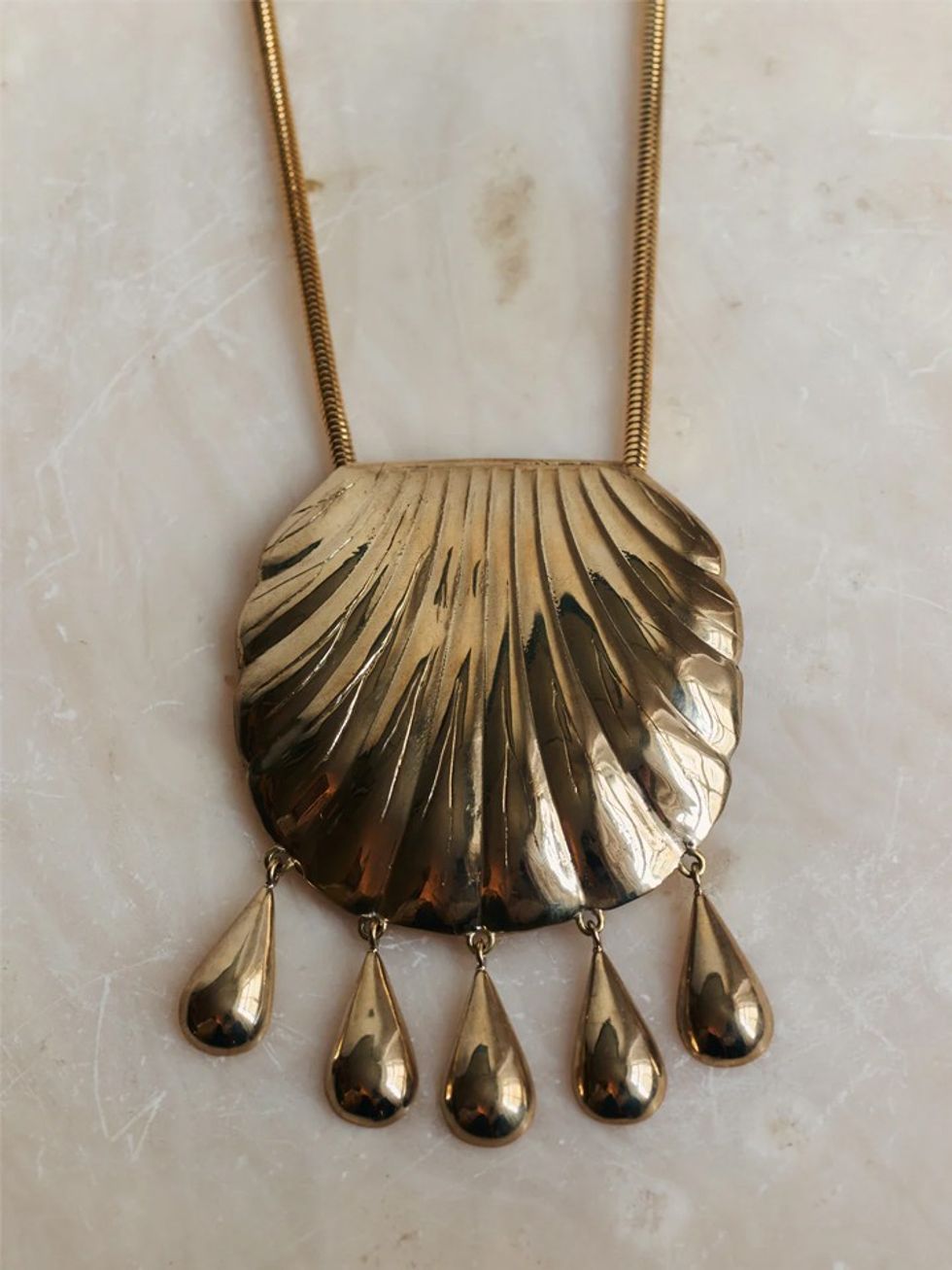 For Ferentinos, the significance behind shell jewelry runs deeper than a Shell Girl Summer label that trends for a season just to fade out at the first signs of fall. “Shells are deeply symbolic for me—not just as motifs of nature, but as relics of memory and heritage.” Her Greco-Roman roots often inspire many of her designs, pulling references from ancient mosaics, shorelines, and local markets across Greece and Italy. “I love how a single shell can feel sensual, mysterious, and almost mythological,” she tells me. Perhaps that sense of history might help explain why shell jewelry is resonating now, paralleling the boom in vintage shopping, as seen by the rising popularity of platforms like The Vintage Marche and Newell Vintage.
