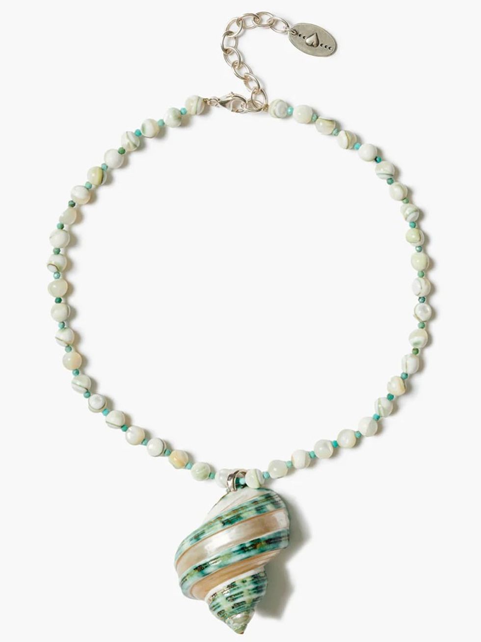 According to Ferentinos, the Petra Shell Pendant has “become a piece of wearable art,” she says. “It’s not simply something you wear with an outfit—it is the outfit.” And that’s exactly the point. The shell jewelry we’re seeing today is much more than just a mere necklace, ring or earrings to embellish—it’s the centerpiece of which women are dressing around. Elsewhere, designers like Tory Burch and Isabel Marant dove into the oceanic energy, opting for wooden bead necklaces, puka shells and octopus motifs that nod to the trend in a more understated way.