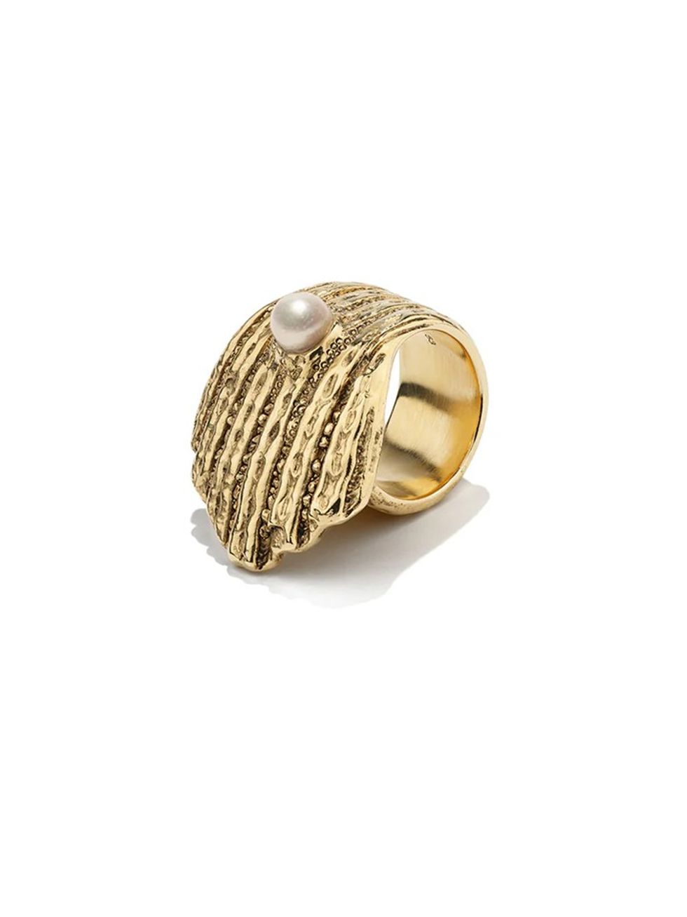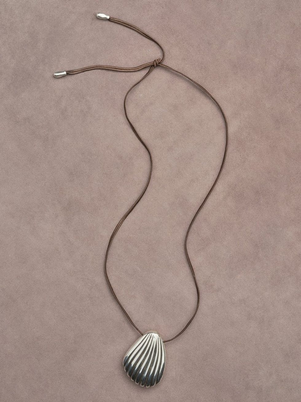 At Chloé’s Spring/Summer 2025 runway show, Chemena Kamali leaned in with a series of looks accessorized in seashell motifs. There were bags adorned with glinting gold shells, asymmetrical drop earrings that echo the uniqueness of beachcombed finds you’d sift out on vacation. A similar spirit runs through the work of jewelry brand Juju Vera. “In the past, shell jewelry was often seen as purely bohemian with beachy, laid-back connotations,” Juju Vera founder Julia Ferentinos tells us.. “But today, it's evolved into something more sculptural and statement-driven.” She points to her Petra Shell Necklace as an example. “I wanted it to have a sense of reverence for a natural seashell's organic form, but I also had a desire to reimagine it through a modern, architectural lens. I think there is an appetite for more bold statement pieces that can pair with minimalist, monochromatic looks. They create a powerful visual contrast that feels both refined and unexpected,” she adds.