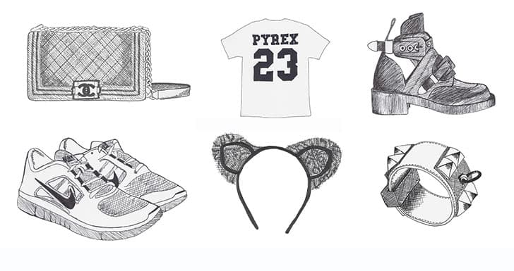 We teamed up with illustrator Cecilia Doan of the freshly minted (and super addictive) Shit Bloggers Wear, a Tumblr that documents those omnipresent pieces coveted by the bloggers we know and love with get-on-our-wall-right-now minimalist sketches. Doan, who works as a digital creative strategist in Portland, Oregon by day, plays I Spy with my little iPhone by night, spotting those repeat offenders: Kenzo tiger sweatshirts, Ain’t No Wifey beanies, and anything Brian Lichtenberg, for instance. We couldn’t help but jump on the opportunity to collaborate with Doan this NYFW—she’s a girl after our own heart, after all. Take that, Valentino rockstud heels and Céline Trapeze Bags!