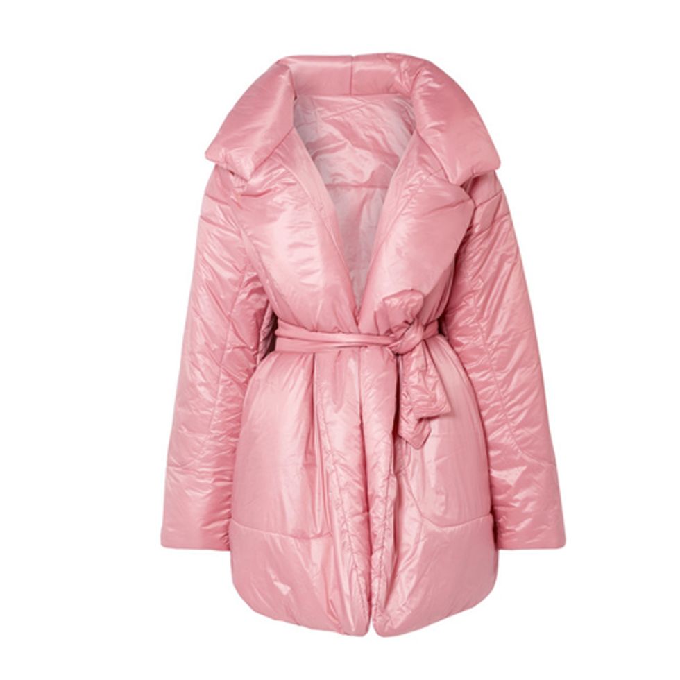 The silhouette on this bubblegum-pink jacket has us dreaming of a Nordic vacation. Anyone else?