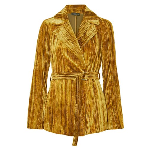 More velvet, I say! Stine Goya’s marigold version in a ’90s style (anyone else wear crushed velvet pants on the regular?) is just begging to join your closet family. Pair it with a vintage rock ’n’ roll tee and some platform python boots.