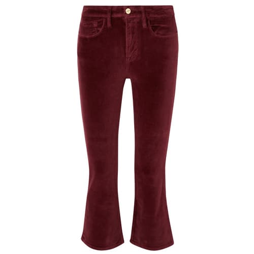 There’s something about maroon velvet that makes you look like you’ve got seven digits on your paycheck. I can’t get over this luscious cropped version from Frame—perfect for showing off those new boots you just bought.