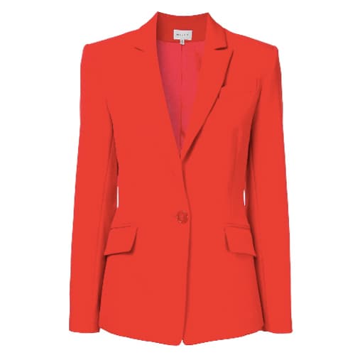 would deem a power suit moment. If you assume you don’t need a cherry-red stunner in your closet at all times, meet this Milly confection and think again.