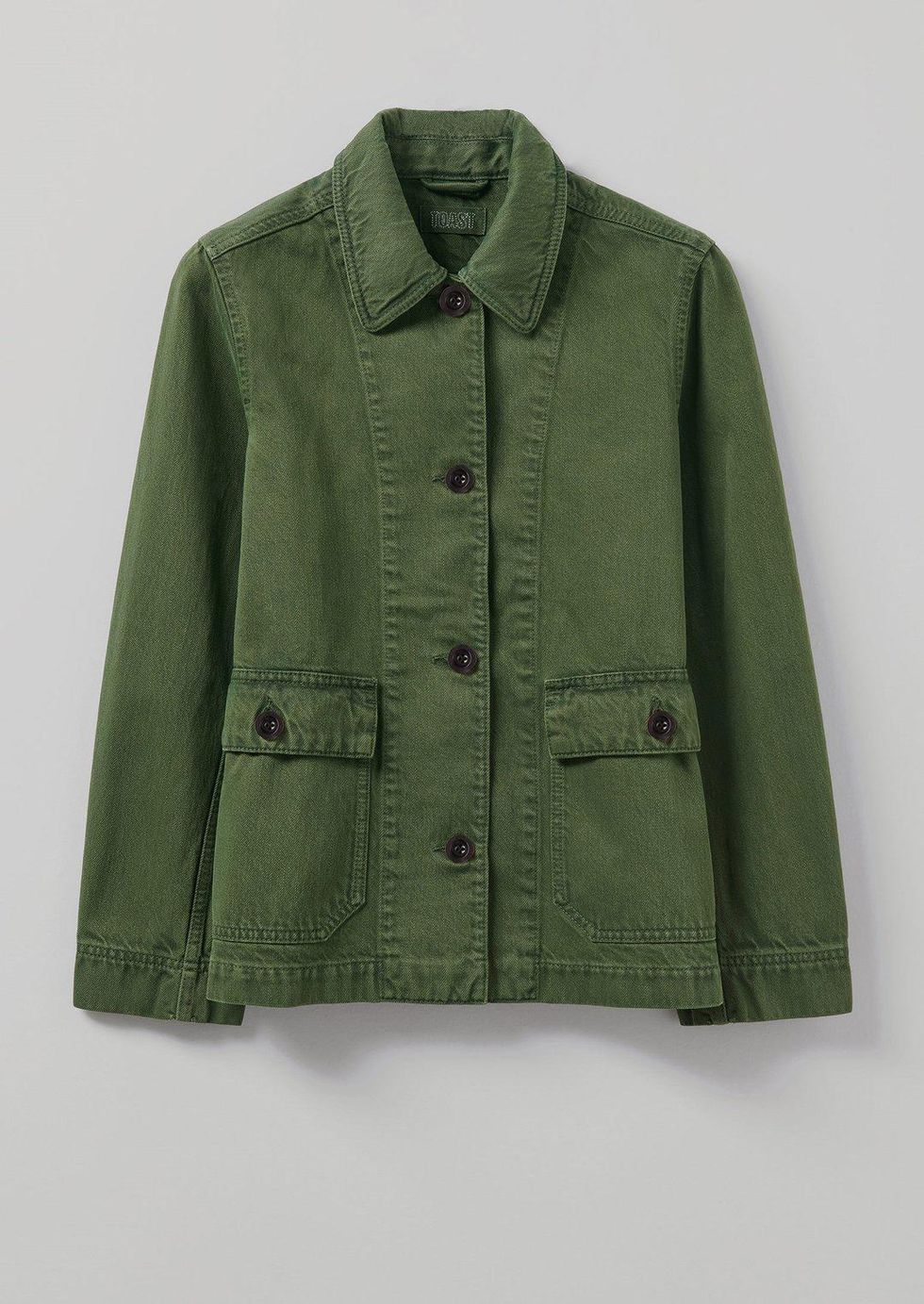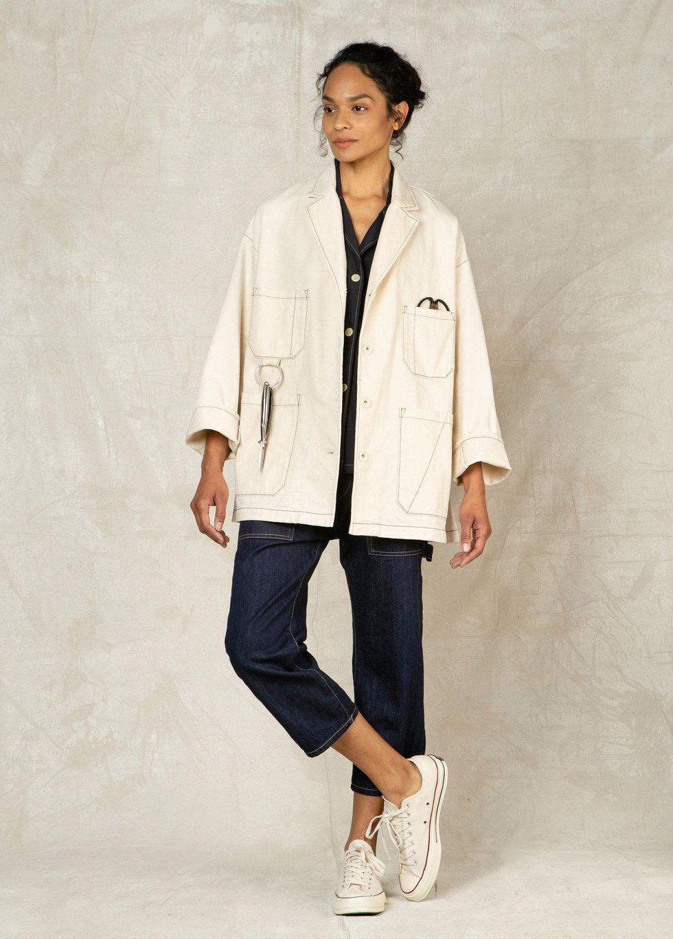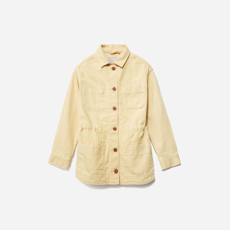 It's now late spring, a time when the weather is undoubtedly fickle and every cloudy day threatens the stability of your mental state. In your corresponding process of getting dressed without knowing whether to expect rain or shine (because you simply can't always trust the forecast), we abide by the following statement: When in doubt, opt for light layers. May we present to you our favorite light layer of 2021: the French-inspired chore jacket. It checks all your "we're almost to summer weather but not quite" boxes, it's boxy enough to stuff oversize sleeves and ruffles under, it's often rendered in simple, utilitarian hues to better pair with a wide array of ensembles, and, of course, it boasts lots of pockets—need we say more?