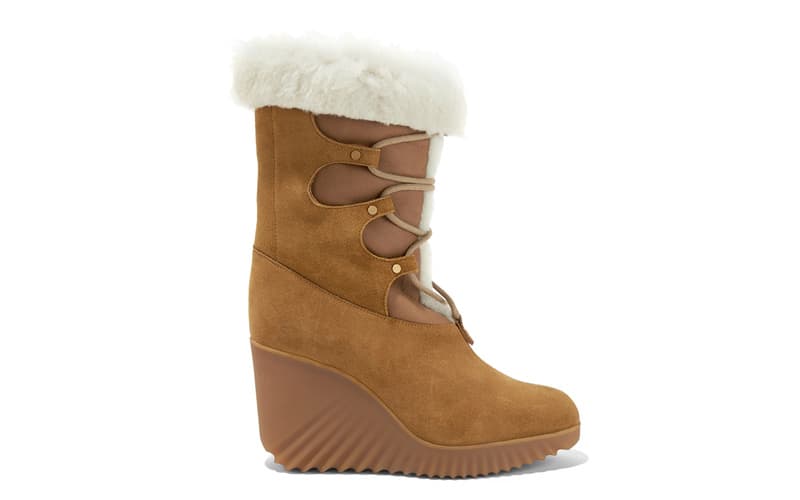 When I typed in snow boots on Net-A-Porter, these came up. I am not entirely convinced they are what they say they are, because for one, they are suede, and two, they have a wedge. But considering I also wore a blue metallic patent jacket on the hike I described above, who am I to judge?