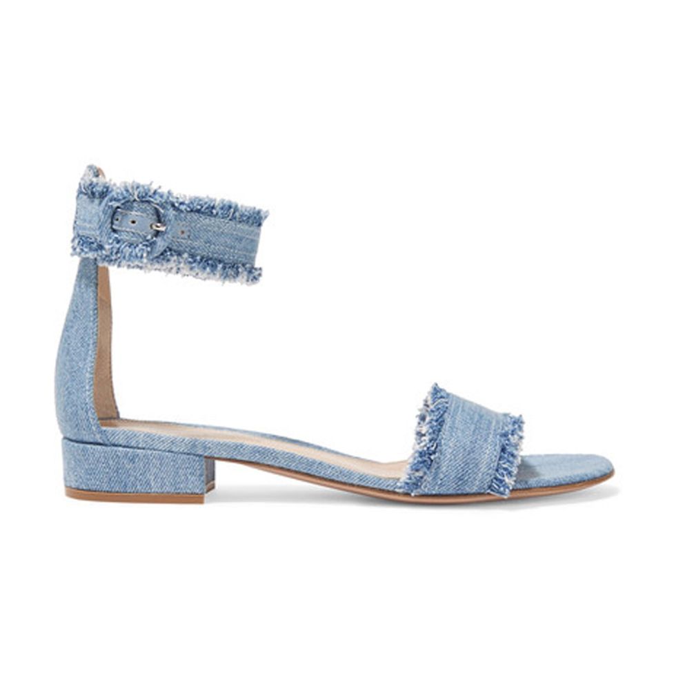 So, while you can obviously wear denim skirts, dresses, or jackets, denim accessories shouldn’t go unnoticed or unworn either. Denim skirts and dresses can feel precious, and jean jackets too literally ’90s; a hint of the indigo stuff on a cross-body bag or minimalist pair of sandals might just be the touch you need to stay grounded while your favorite pair of cropped flares are hibernating.