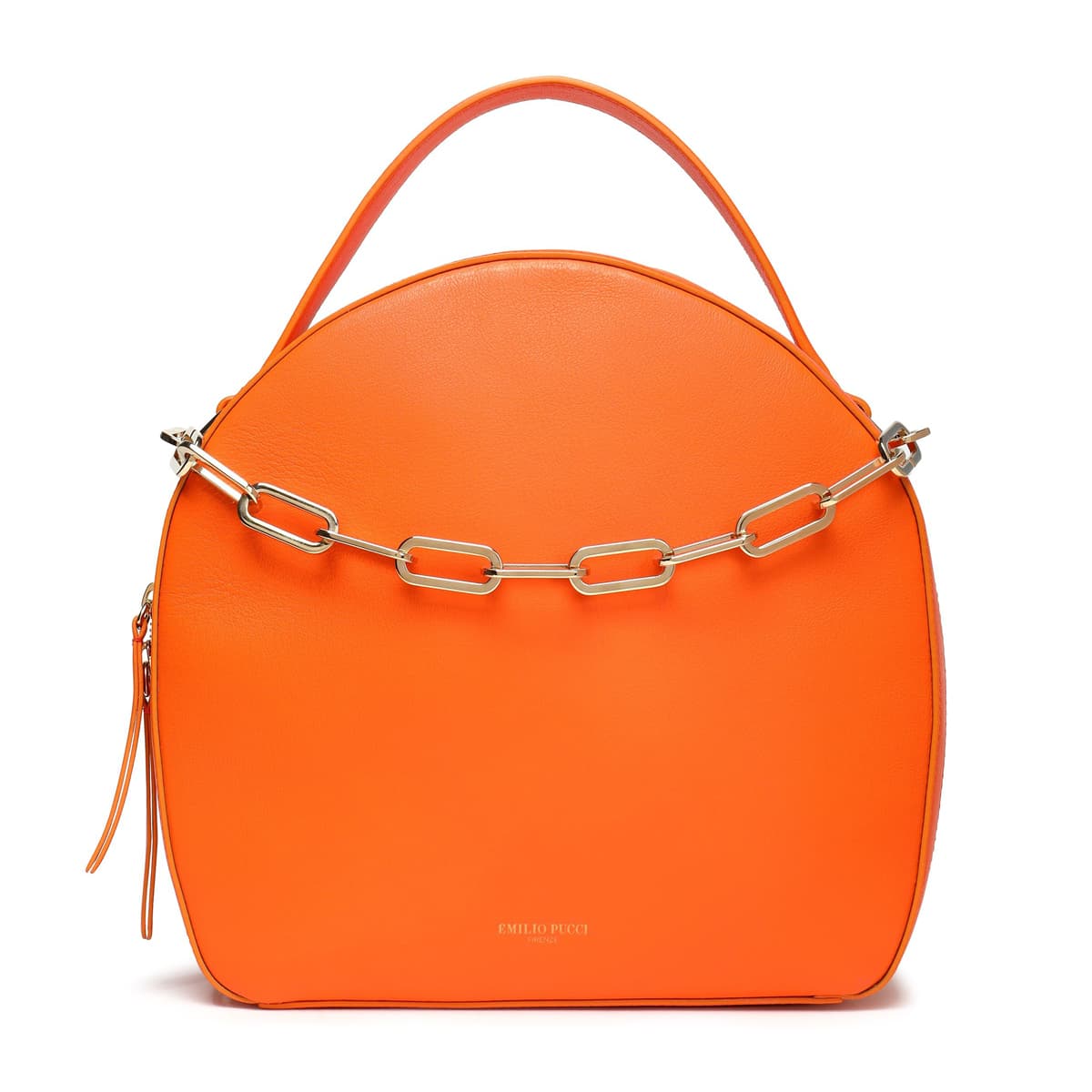 The shape and structure of this bag is everything to me. The color of it makes it easy to dress up or down, and honestly, orange complements a lot more colors than you would think. The chain detailing was the perfect touch for me, as it gives it that perfect little bit of edge.