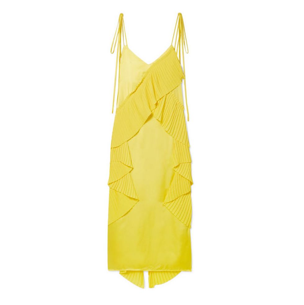 2. Kenzo Satin Midi Dress: If you know me, you know I’m obsessed with yellow. So much so that I should probably stop buying it, but I straight up can’t. Look how flattering the pleated panels and flowing layers. How can I not?