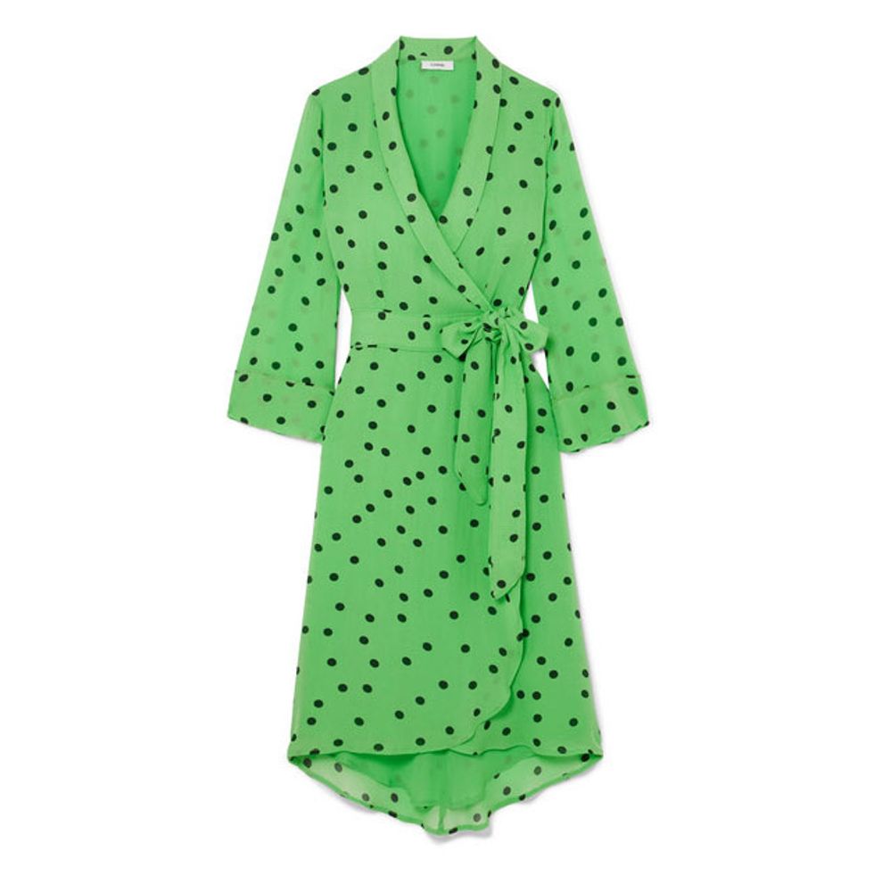 2. Ganni Polka Dot Georgette Wrap Dress: I love this psychedelic green. It makes me think of my vintage shopping days when I was growing up in Seattle. Like I Love Lucy on acid.